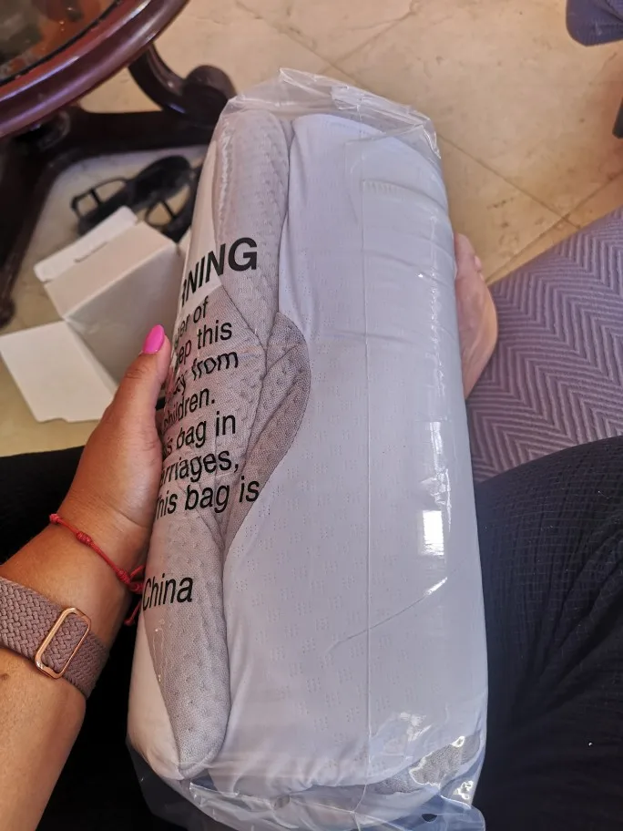 Good quality, comes in a box and inside is the pillow wrapped in a vacuum bag. When you open the bag, the pillow expands and takes its shape. The touch is pleasant, the anatomical shape fits very well. I would have liked it to be a bit longer, they could make several sizes.