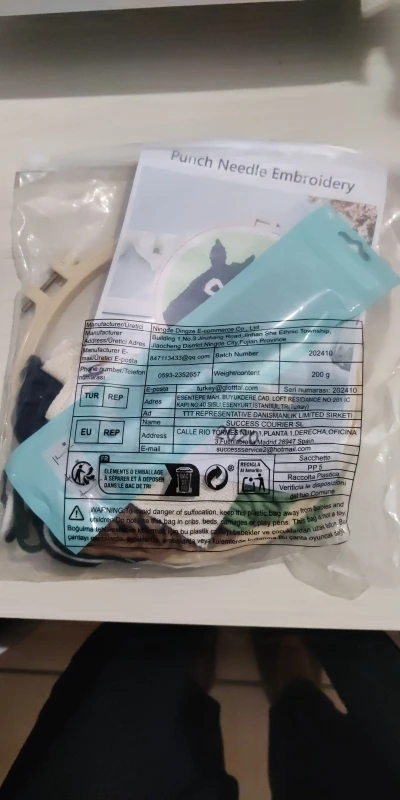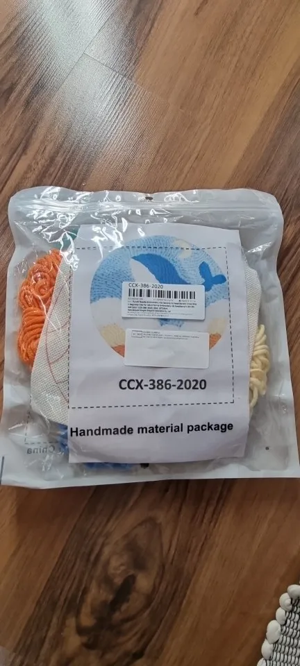 Arrived very fast. I really like everything about it. I thought that the frame would be made of wood however it’s made from plastic which is okay. One thing i did notice is that they did not provide enough wool for the project so it was left incomplete which is a shame.