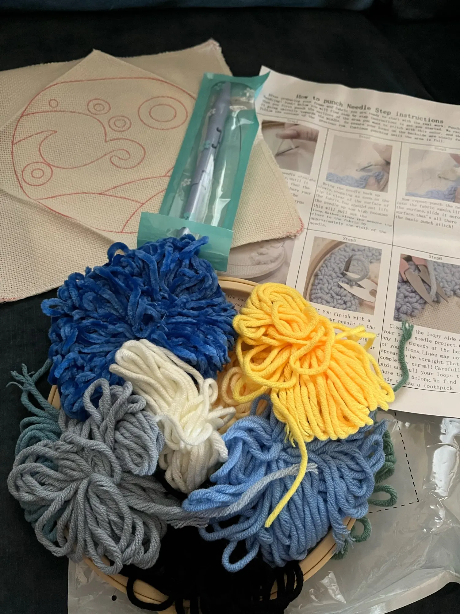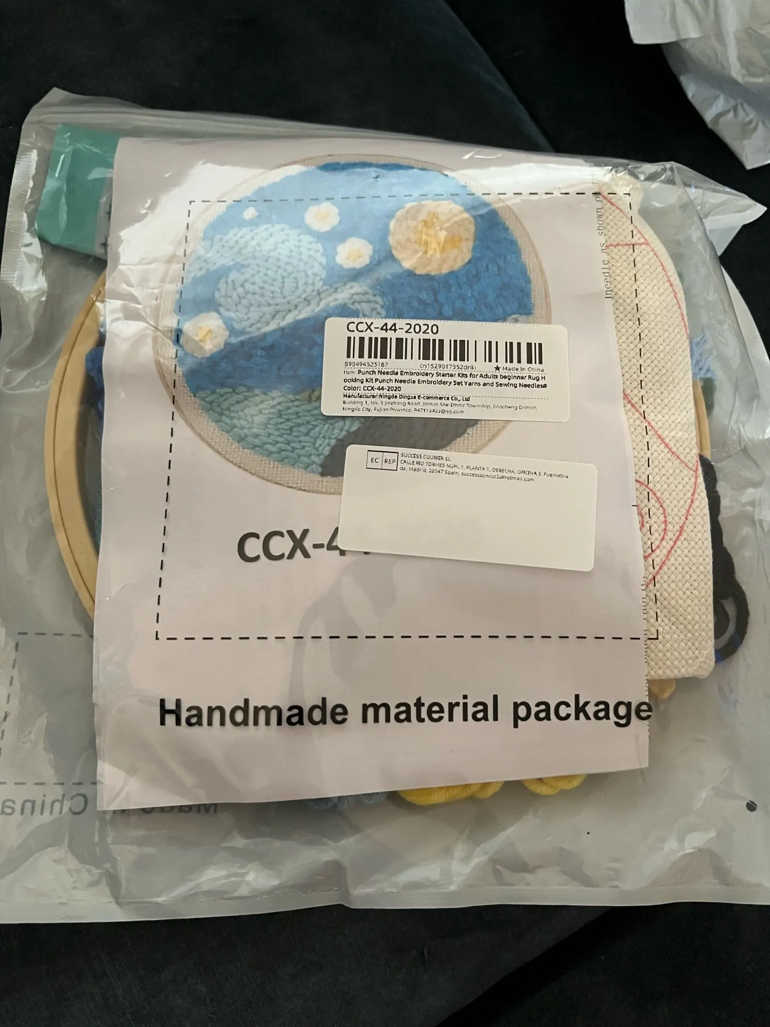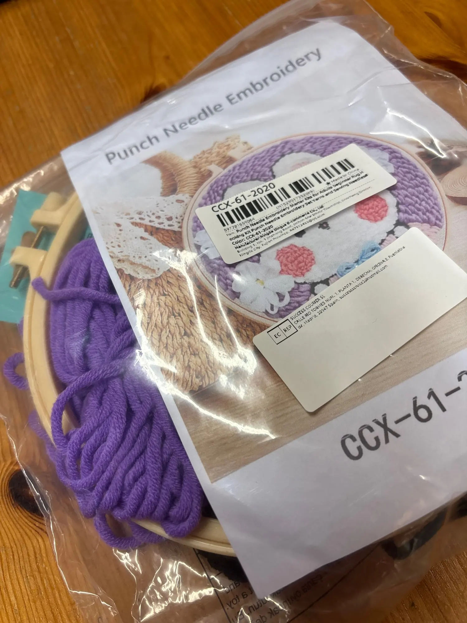 Arrived very fast. I really like everything about it. I thought that the frame would be made of wood however it’s made from plastic which is okay. One thing i did notice is that there did was plenty of wool left over unlike the other one that i purchased project .