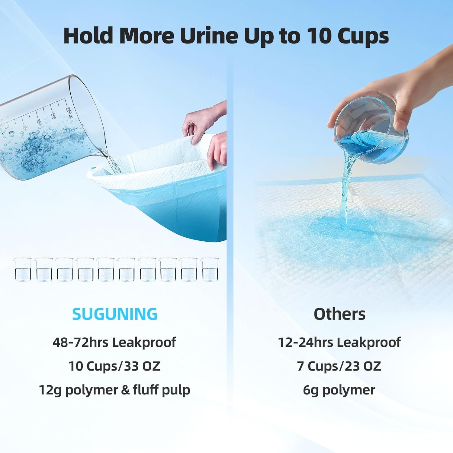 Super Absorbent & Quick Drying: The 6-layer protection design makes our thickened puppy pee pads much more absorbent than other dog training pads, perforated film as the top layer of the incontinence pads which can speed up the liquid to pass through the surface than common non-woven fabric and keep the surface quick-drying