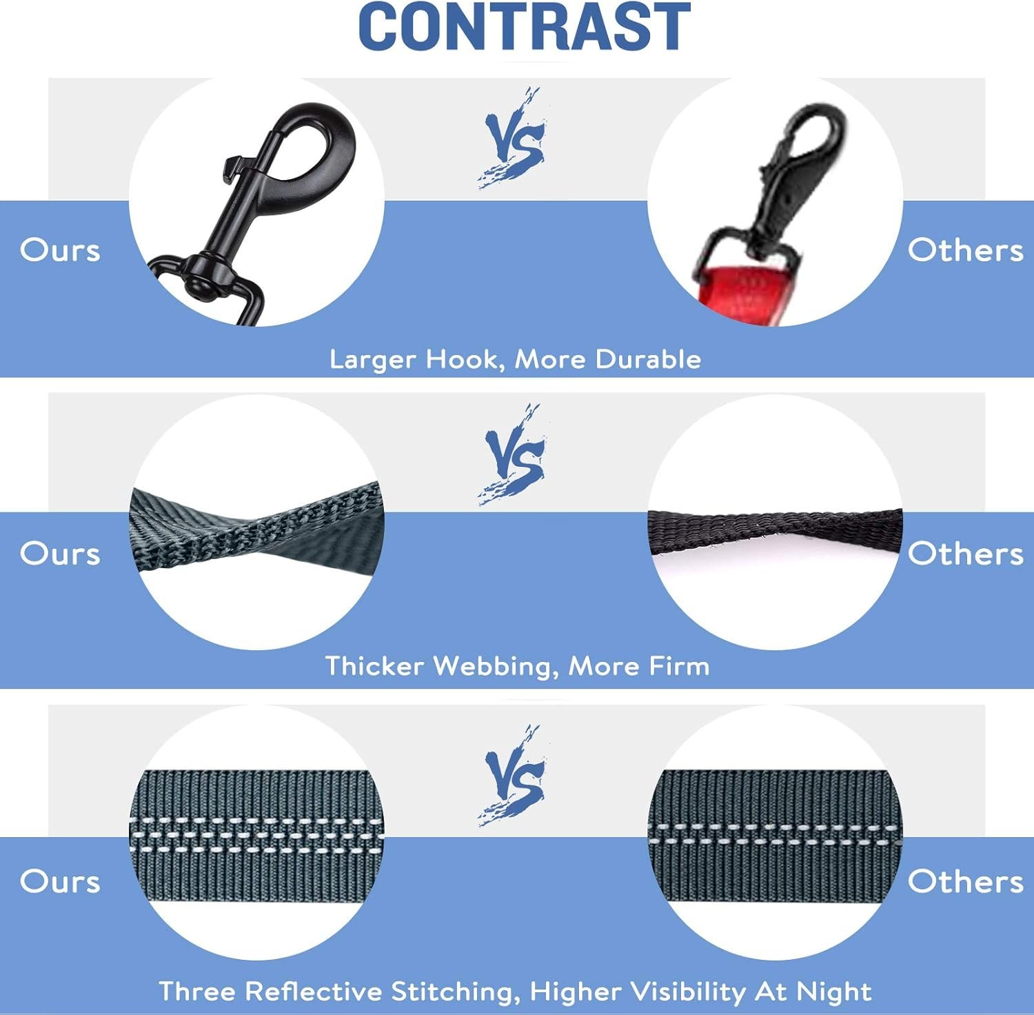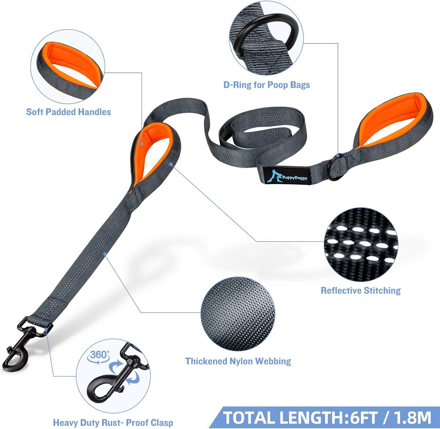 Comfortable Padded Double Handle: PuppyDoggy dog leash with 2 Padded Handles, the first at the end of the leash and another at 1ft from the clip. Soft padding material protects your palm from injury and allows you a comfortable control while training and walking.