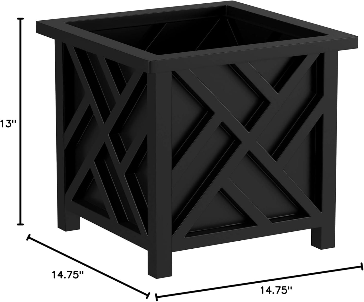 LARGE OUTDOOR PLANTER – This 14.75-inch-square large plant pot is perfect for holding potted plants while providing a decorative cover for growing pots. The elegant lattice design adds a farmhouse-inspired touch to this deck or front porch décor.