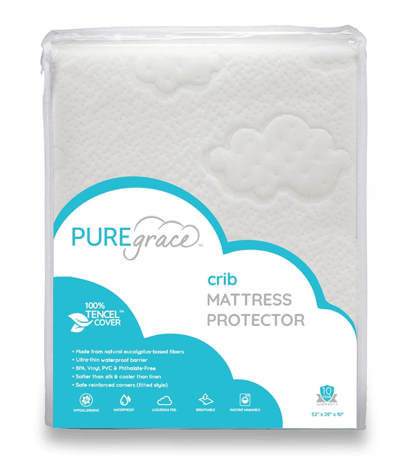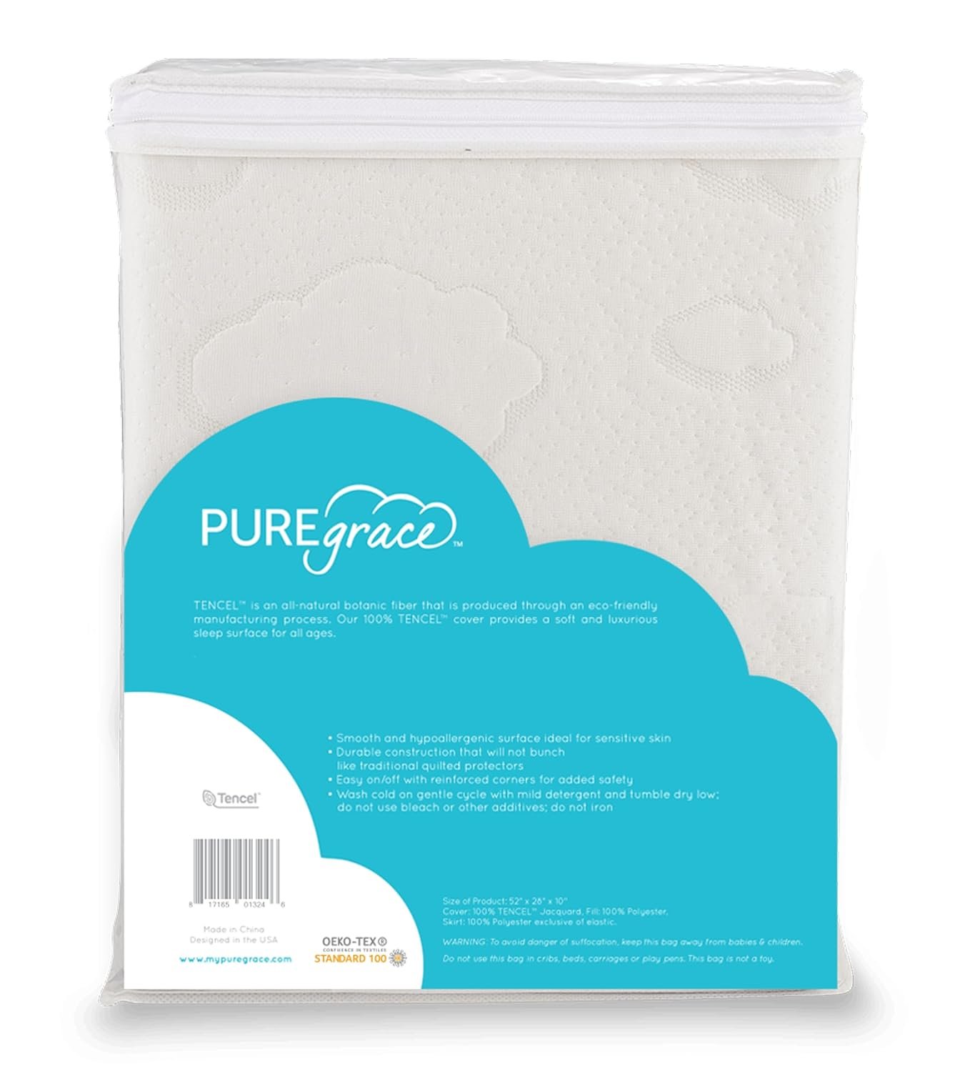 PUREgrace Tencel Crib Mattress Protector – Waterproof, Noiseless, Breathable Cover with Deep-Pocketed Corner Strap for Secure Fit