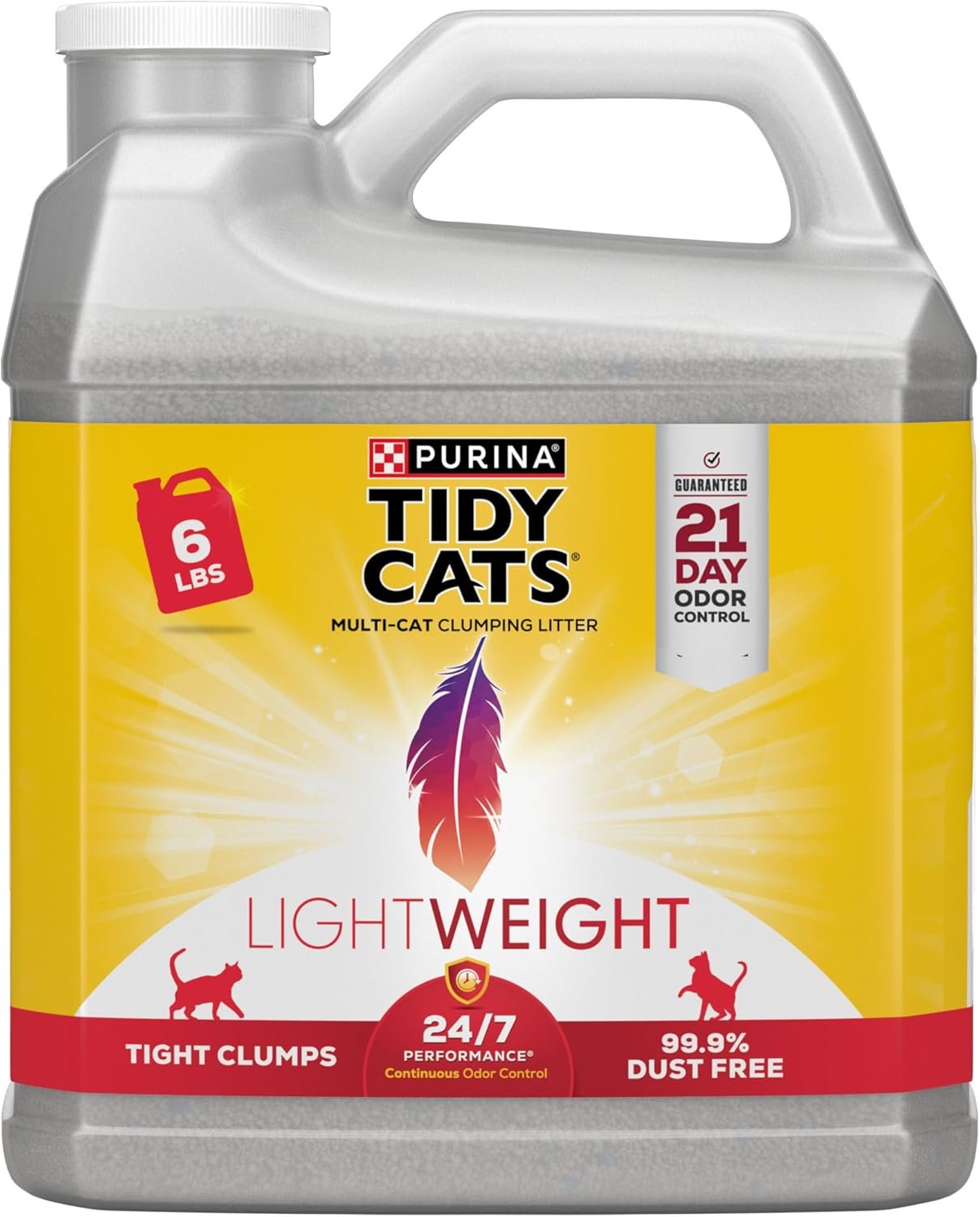 Purina Tidy Cats LightWeight, Low Dust, Clumping Cat Litter Odor Control 24/7 Performance Multi Cat Litter – 6 lb. Jug