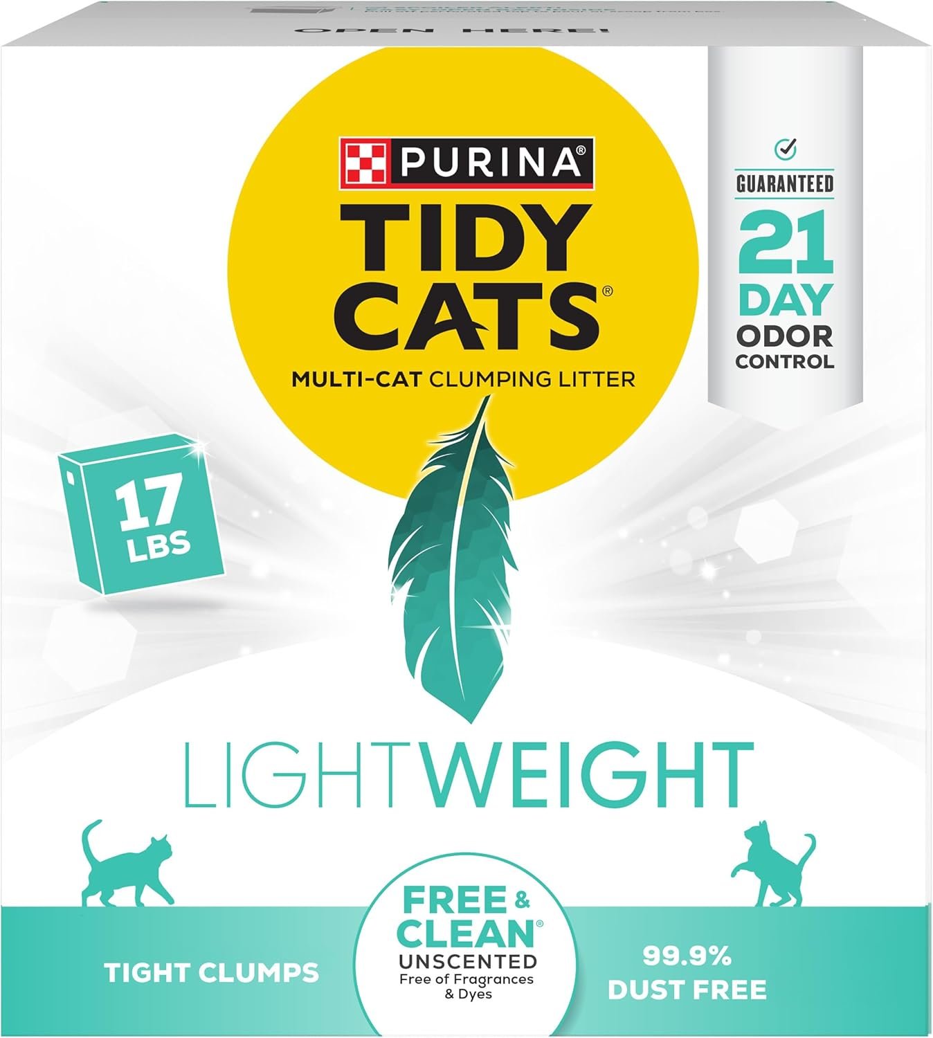 Purina Tidy Cats Low Dust, Clumping Cat Litter Odor Control, LightWeight Free and Clean Unscented, Multi Cat Litter – 17 Lb. Box