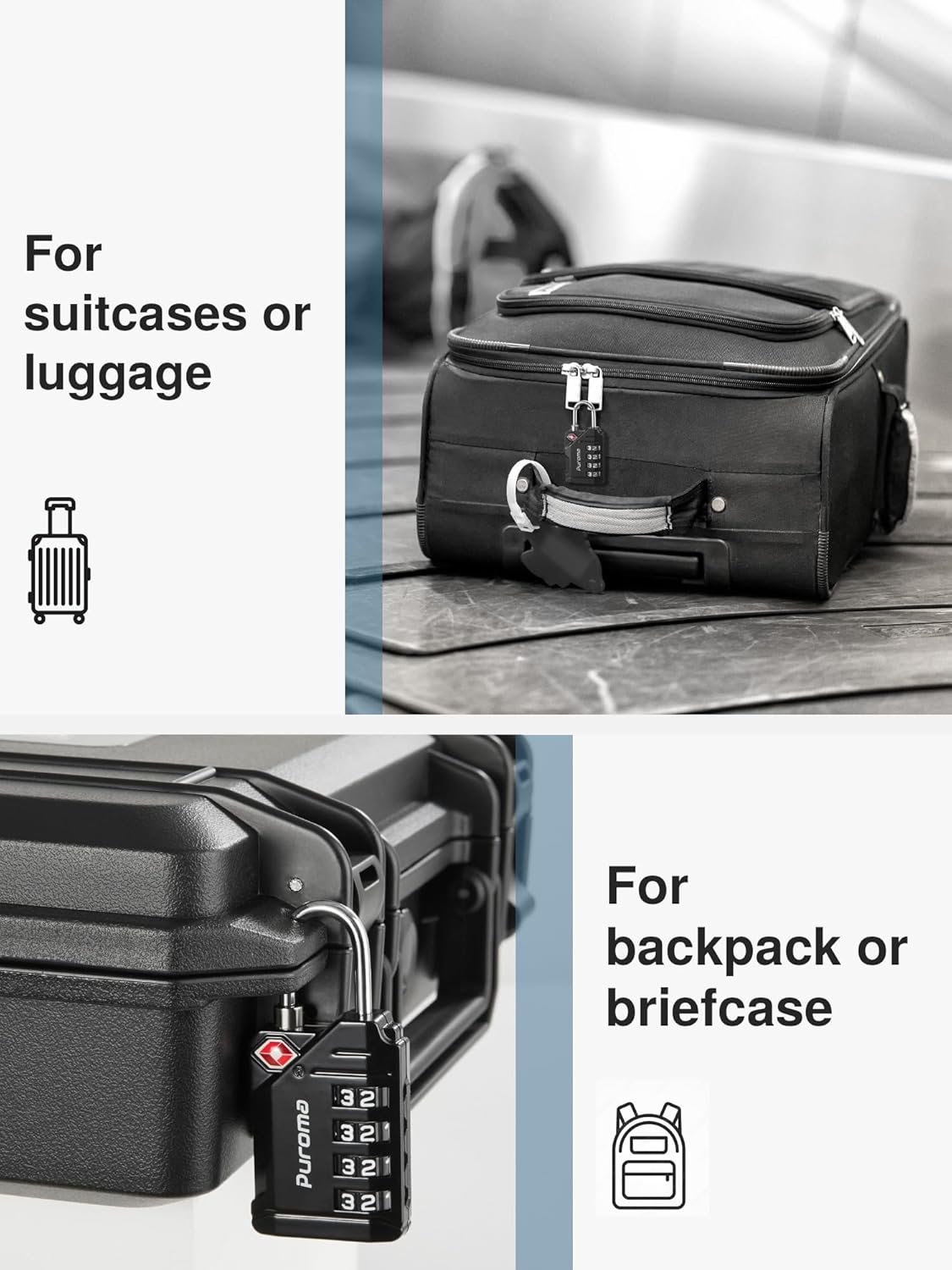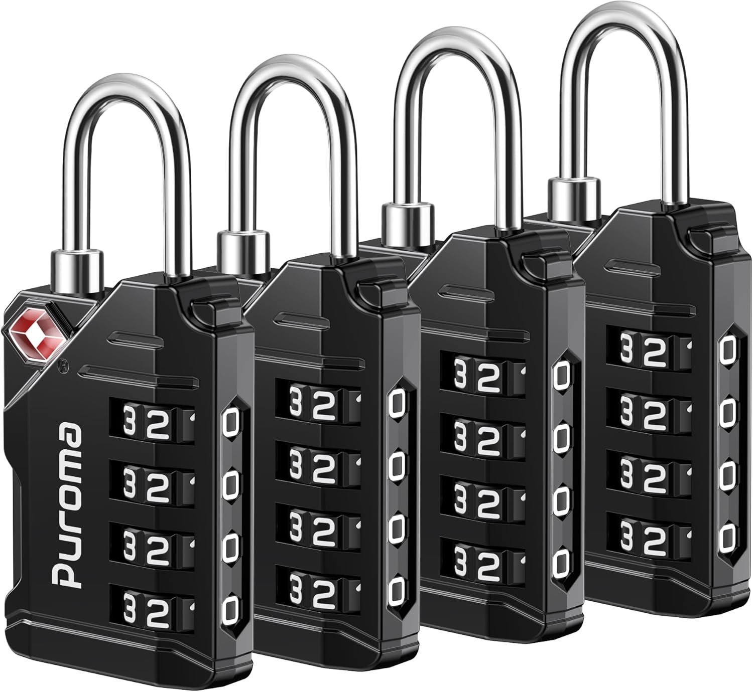 Puroma TSA Approved Travel Luggage Locks, 4 Pack Black 4 Digit Resettable Combination Code Lock with Zinc Alloy Body for Suitcase, Backpack, Laptop Bag, Gym Locker, Toolbox
