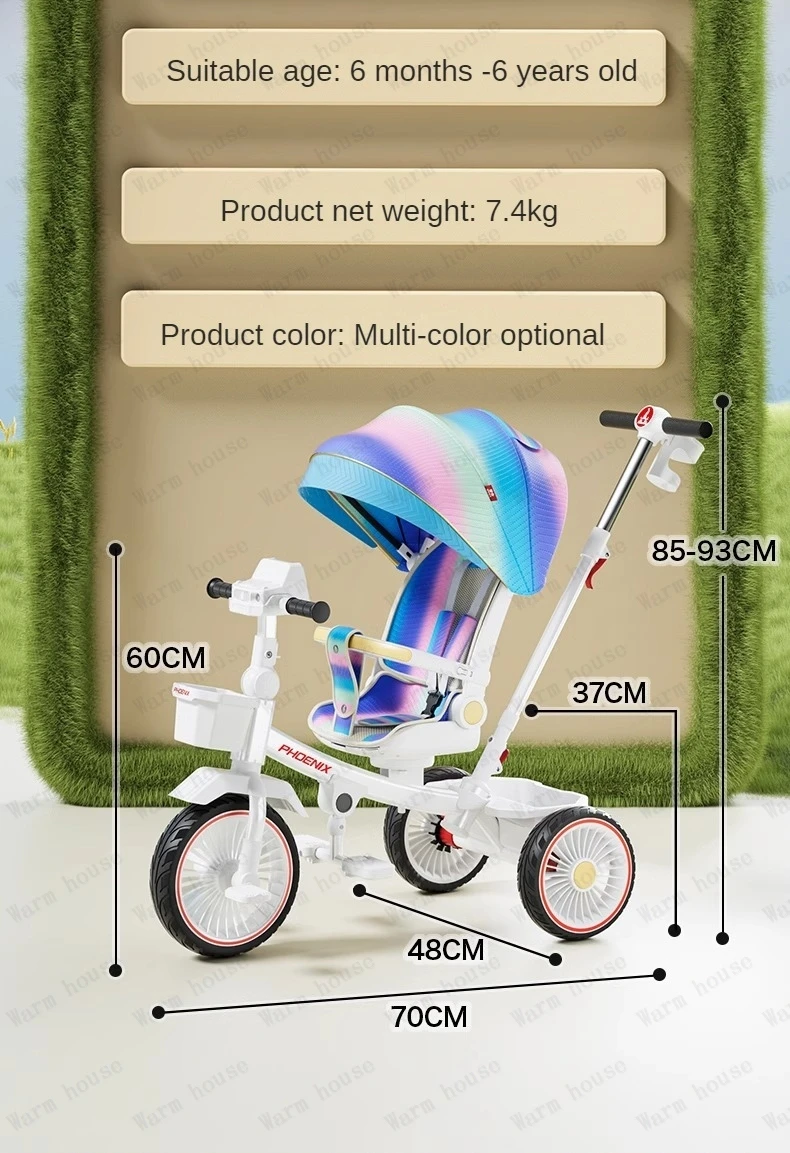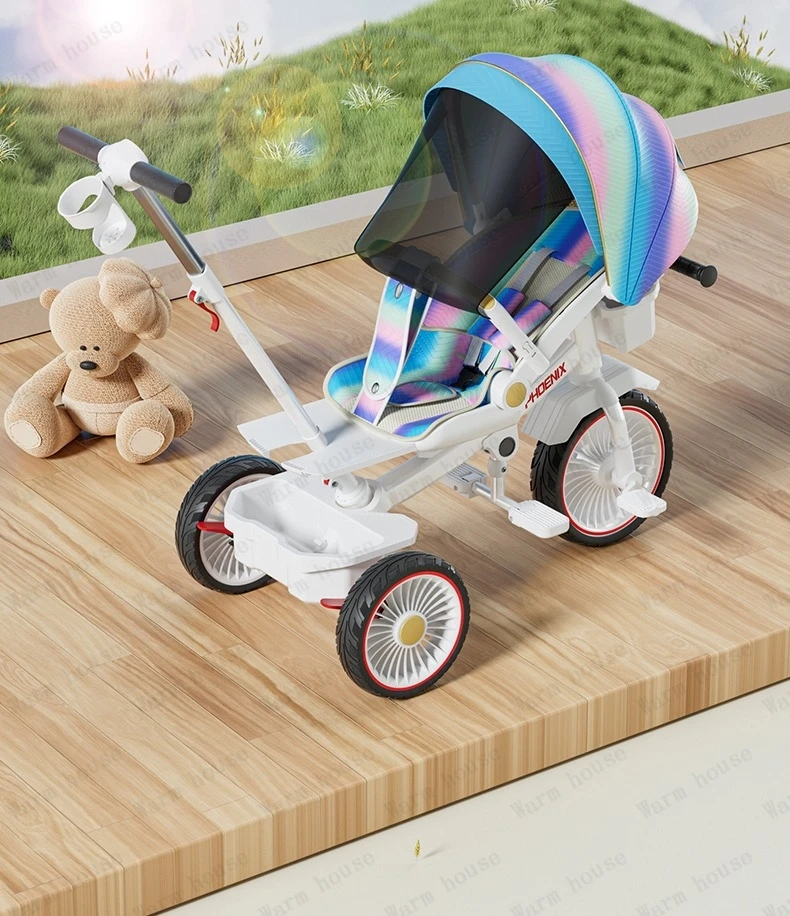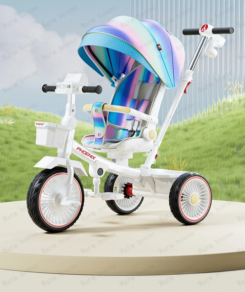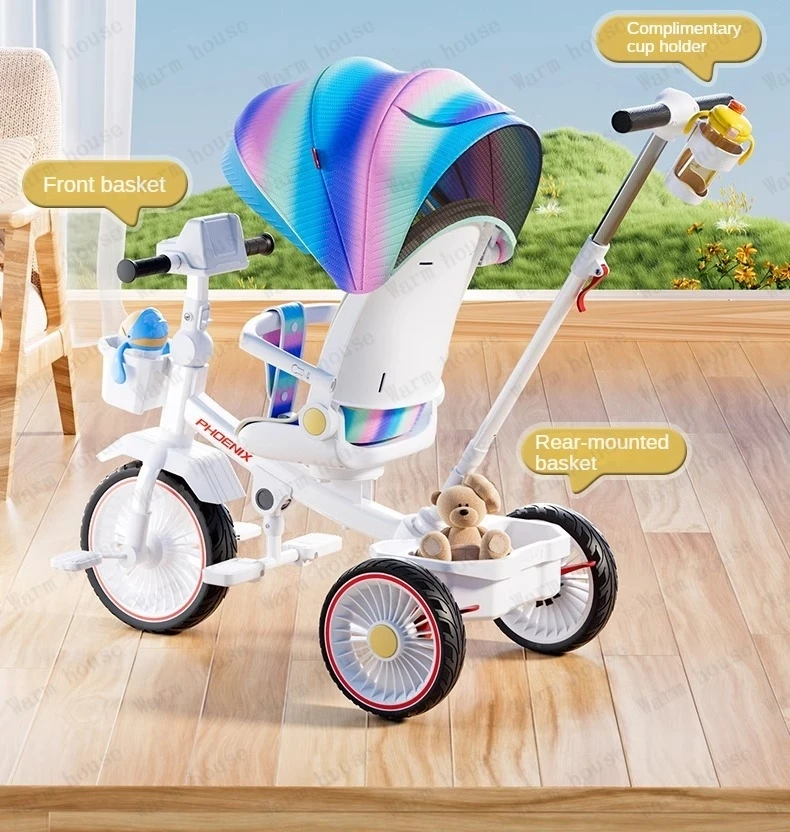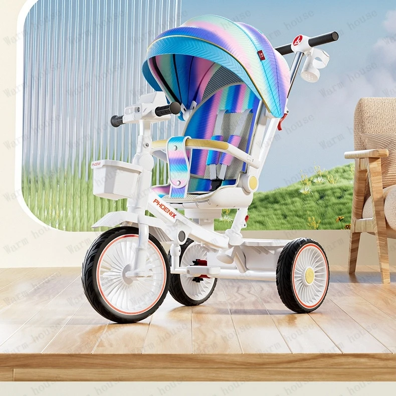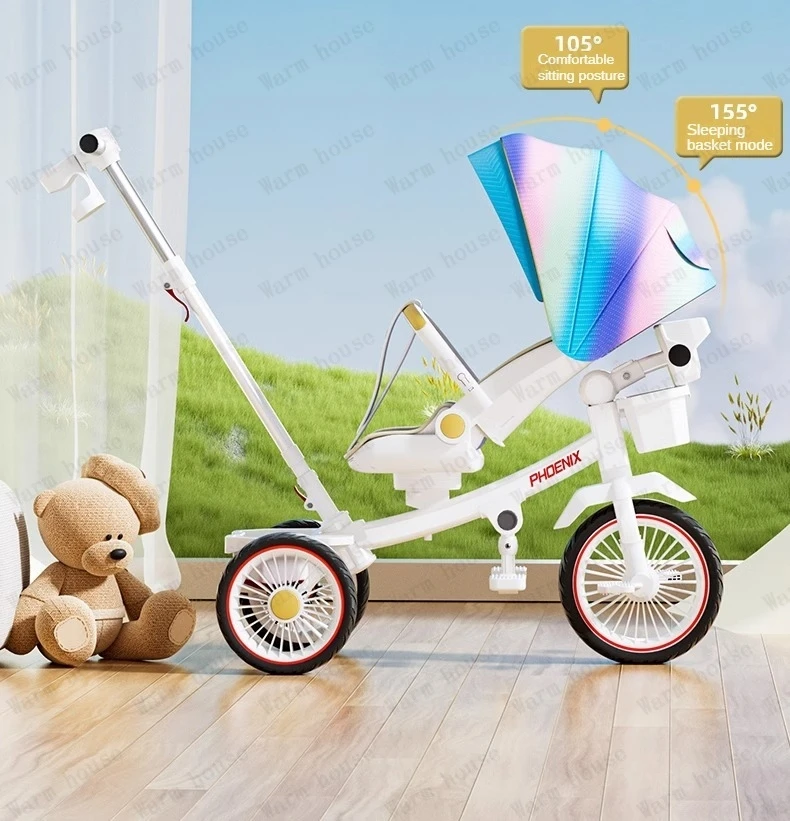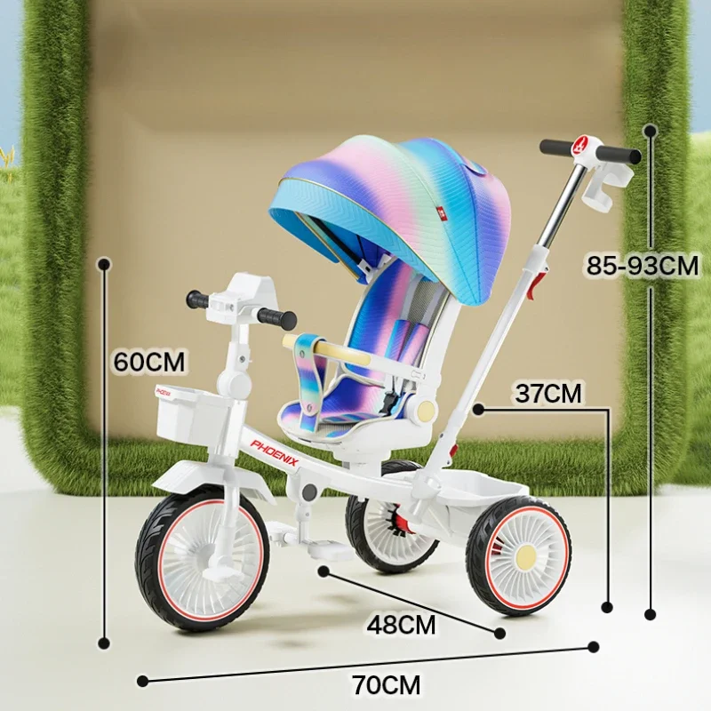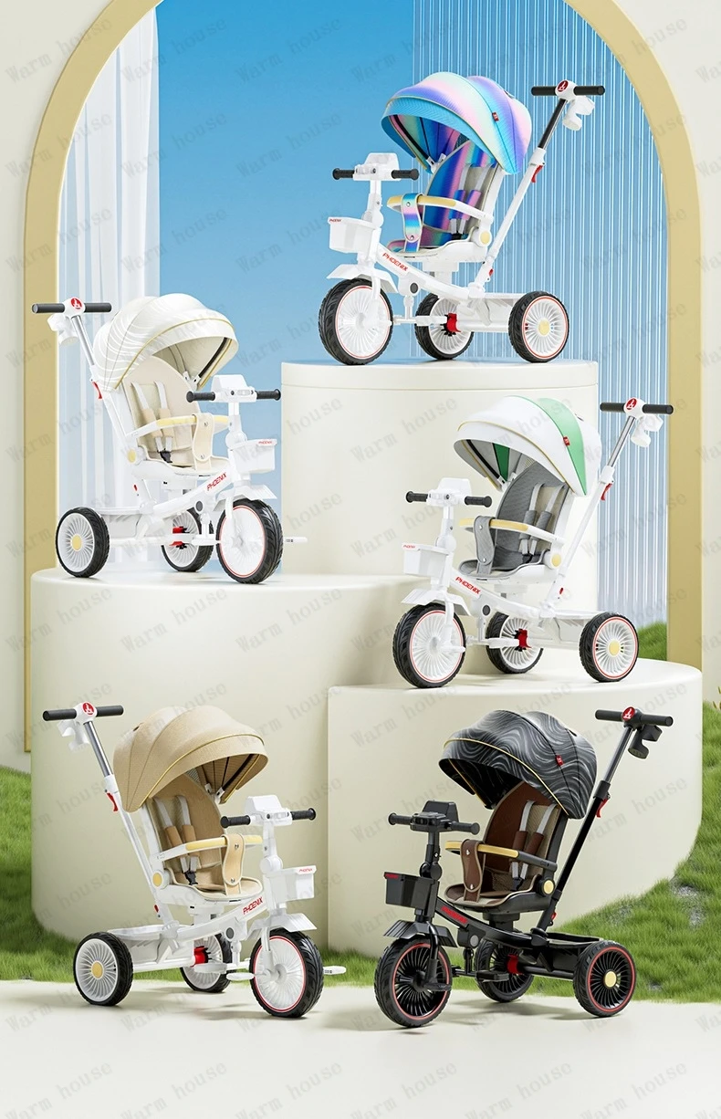 Pushable and rideable children’s tricycle multifunctional stroller Lightweight Travel Pram Children’s riding