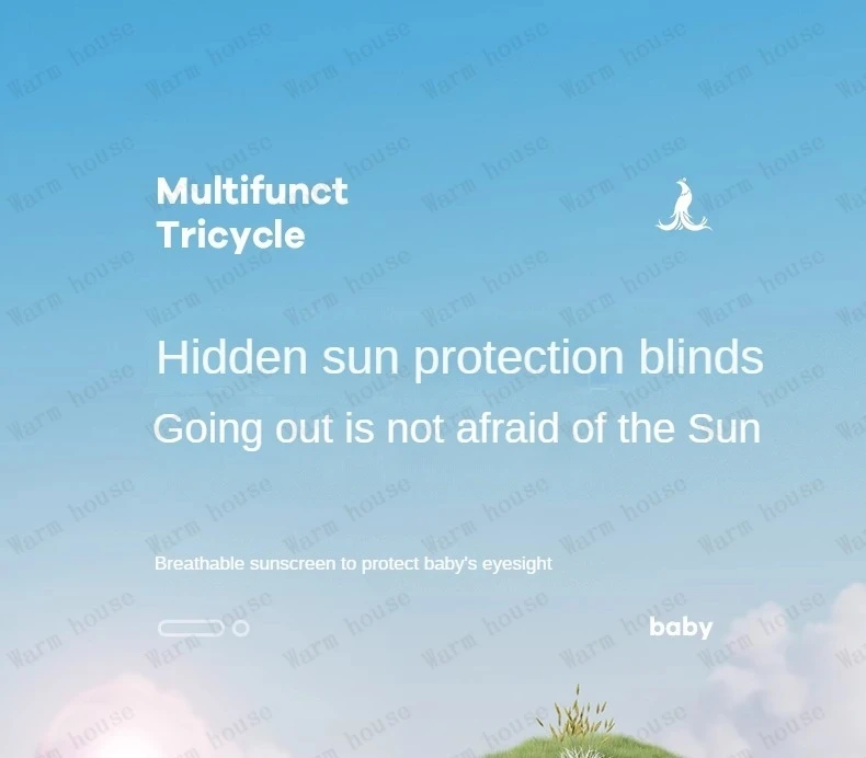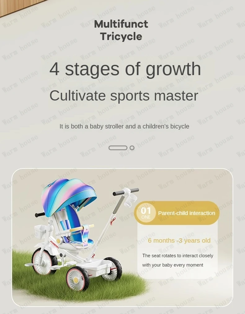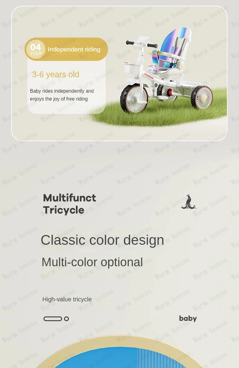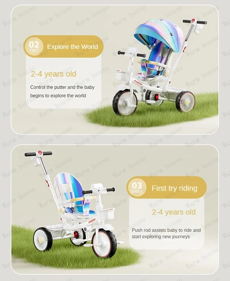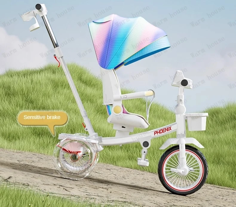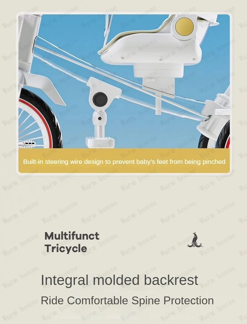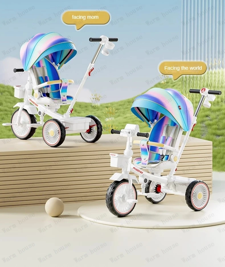 Pushable and rideable children’s tricycle multifunctional stroller Lightweight Travel Pram Children’s riding