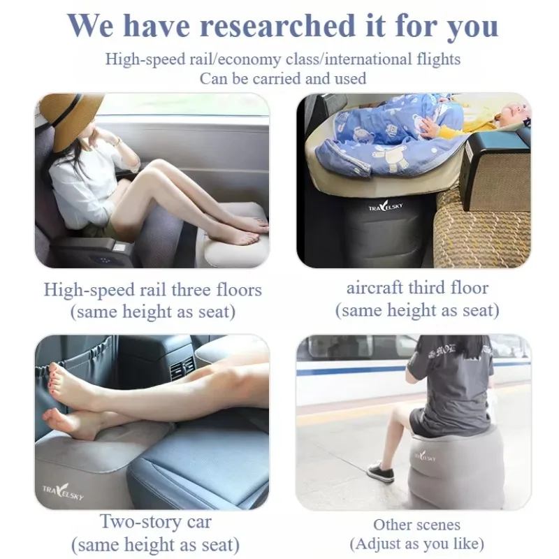 PVC Inflatable Sleeping Footrest Rest Pillow On Airplane Car Bus Adjustable Kids Inflatable Travel Sleep Resting Pillows