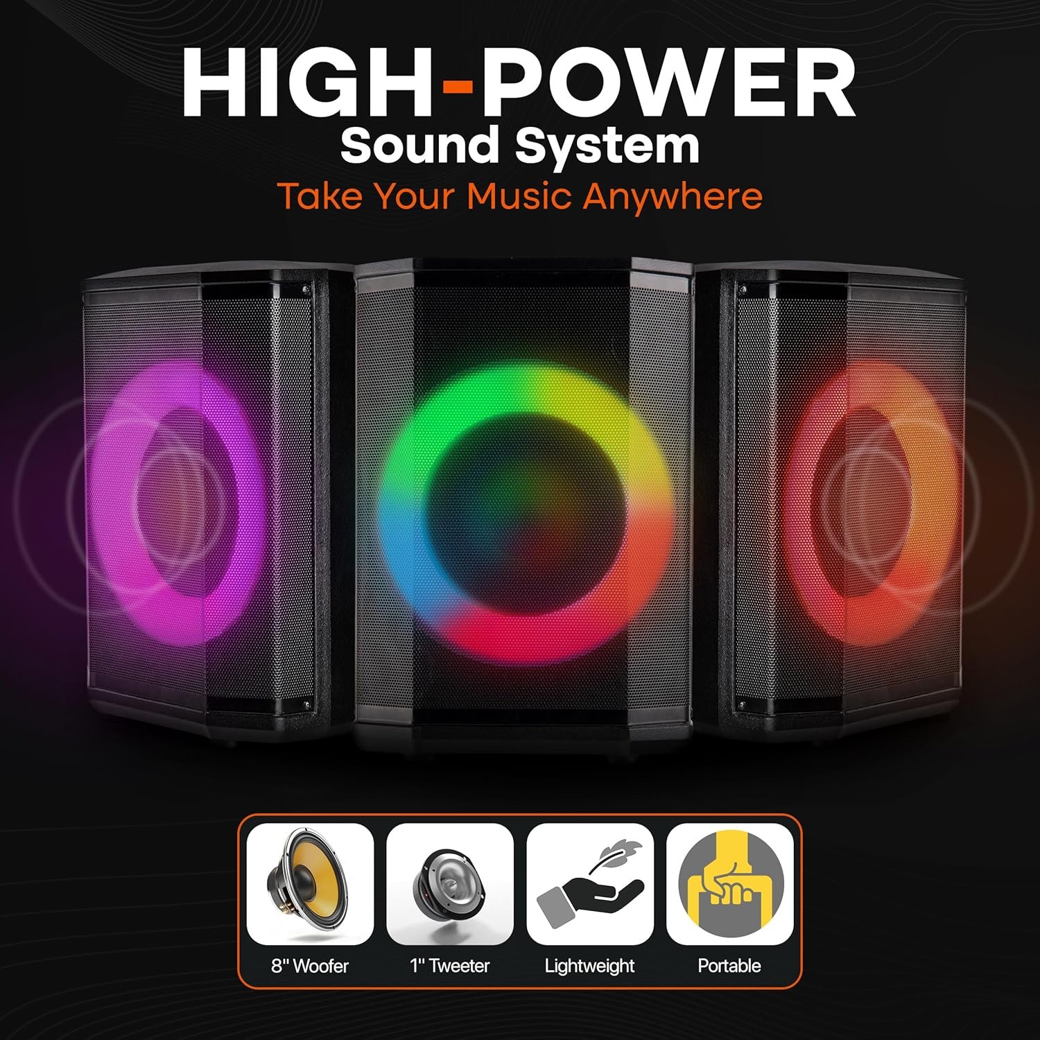Grab and Go Party Machine – The sturdy built-in handle of these big Bluetooth speakers for party makes it a breeze to carry these speakers wherever the fun takes you. It’s your portable party starter, ready to rock at a moment’s notice