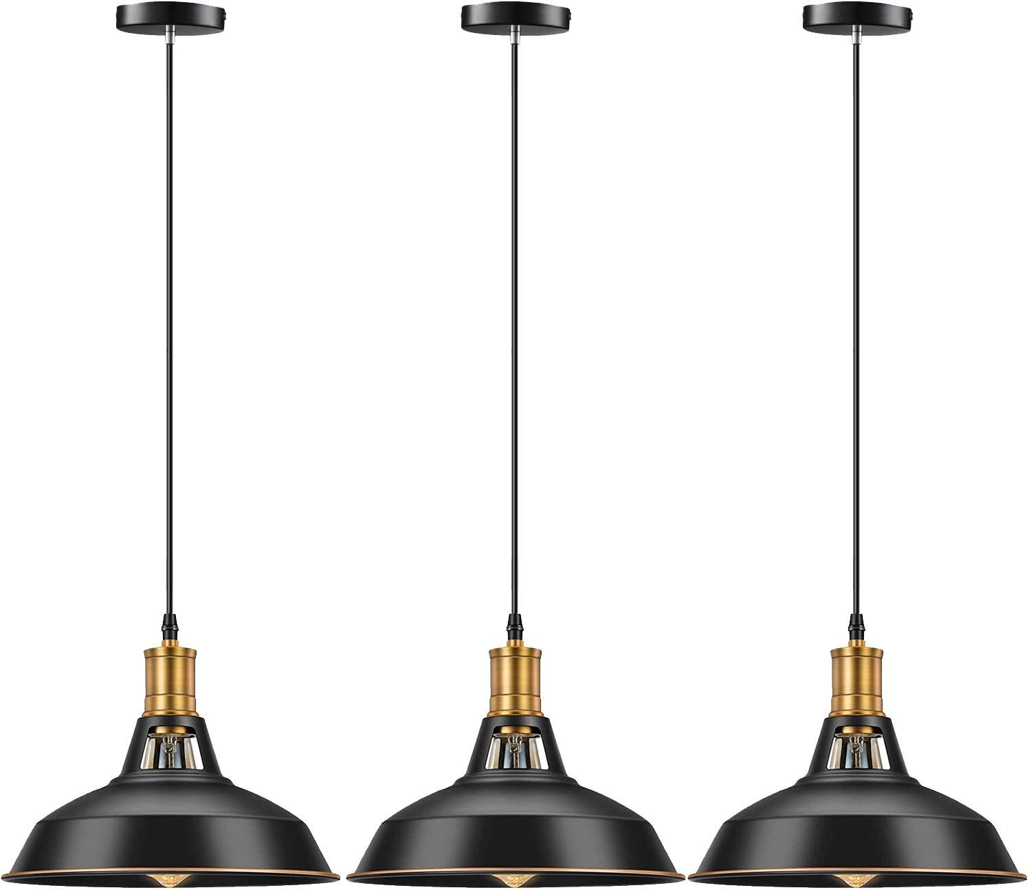 Pynsseu Farmhouse Style Industrial Pendant Light, Vintage Barn Hanging Pendant Lighting, Modern Pendant Lamp Fixture 3 Pack, Oil Rubbed Black Finish