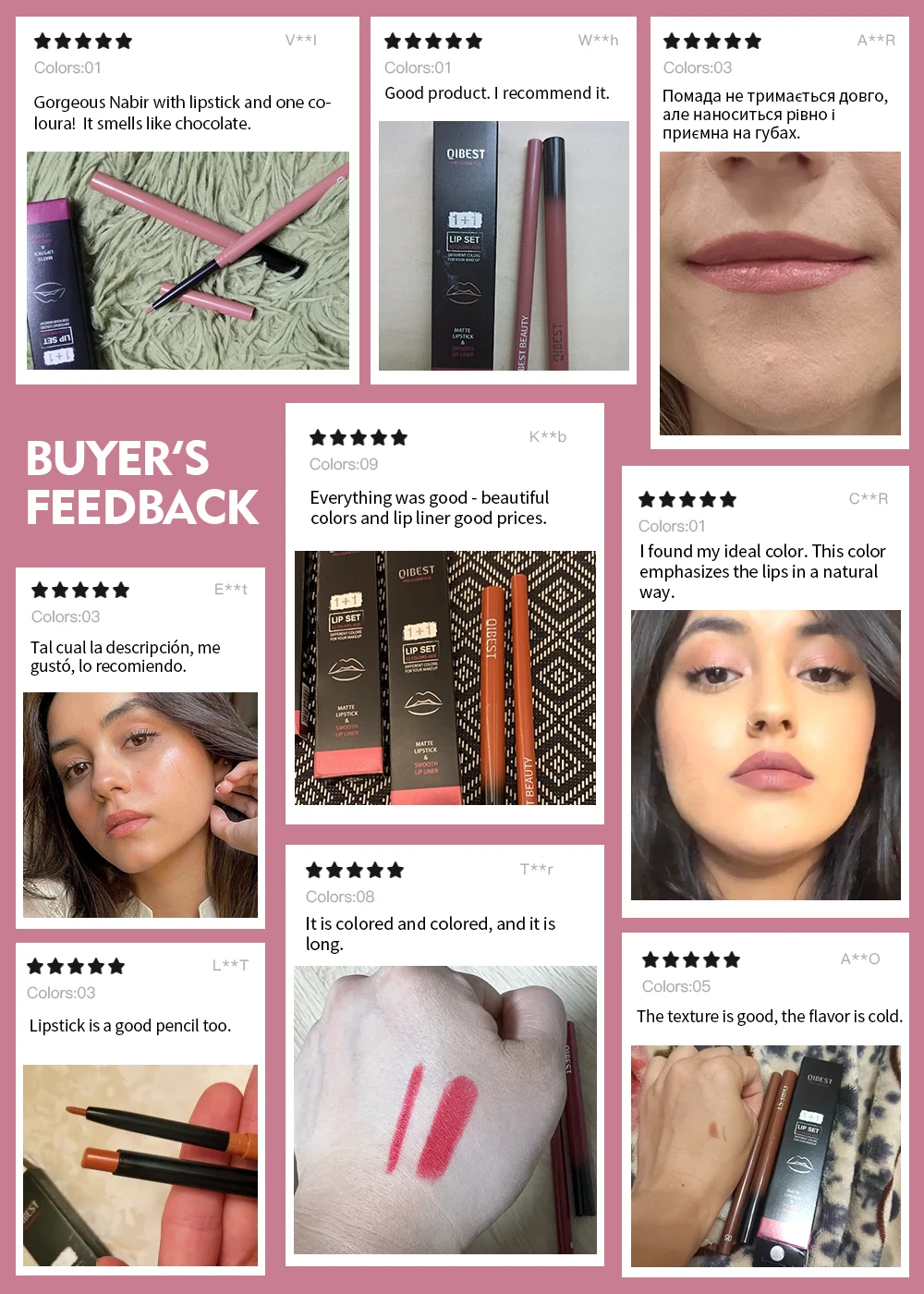 10 reviews for QIBEST 2pcs Lipstick Lipliner Pen Set Matte Nude Lip Liner Pencil Waterproof Long Lasting Lipstick Pen Contour Makeup For Women