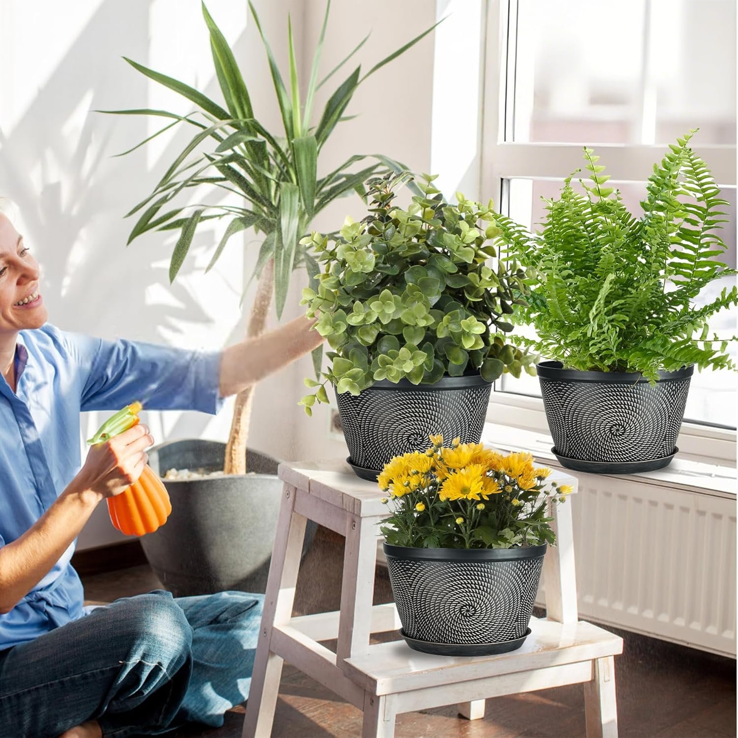 Modern Circle Pattern – Flower pots with saucers provide a unique,designed with 3D circle pattern add a lively and modern feeling, perfect for plants and flowers indoor outdoor, brings out a modern stylish visual representation for any home/office decor without any sense of violation.