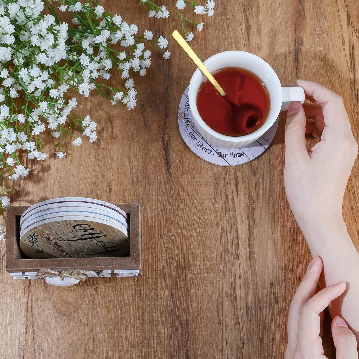 Keep Your Table Clean: the farmhouse coasters with holder is practical to use in daily life, that can avoid your cup scratching the table, so it can keep your furniture or tabletop from wear or stains and you can enjoy your leisure time at ease