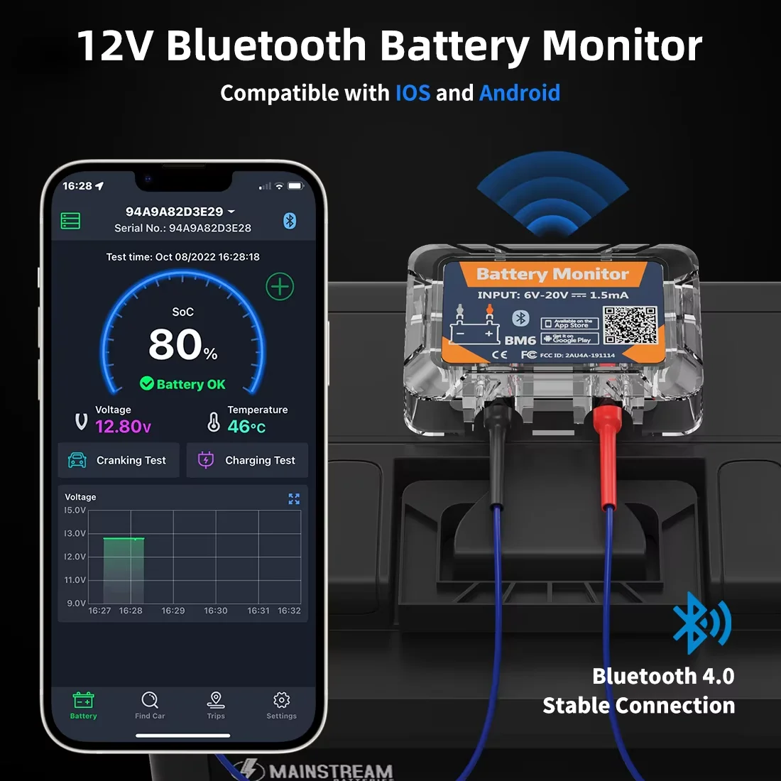 QUICKLYNKS BM6 12V Battery Monitory Wireless Bluetooth Car Battery Health Check APP Monitoring Battery Tester For Android IOS