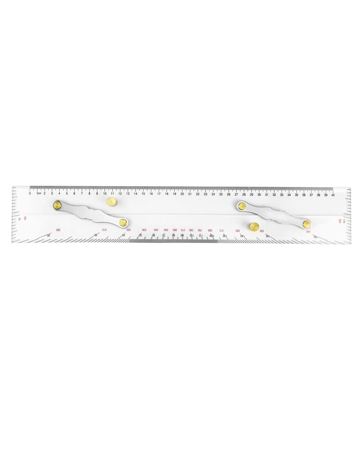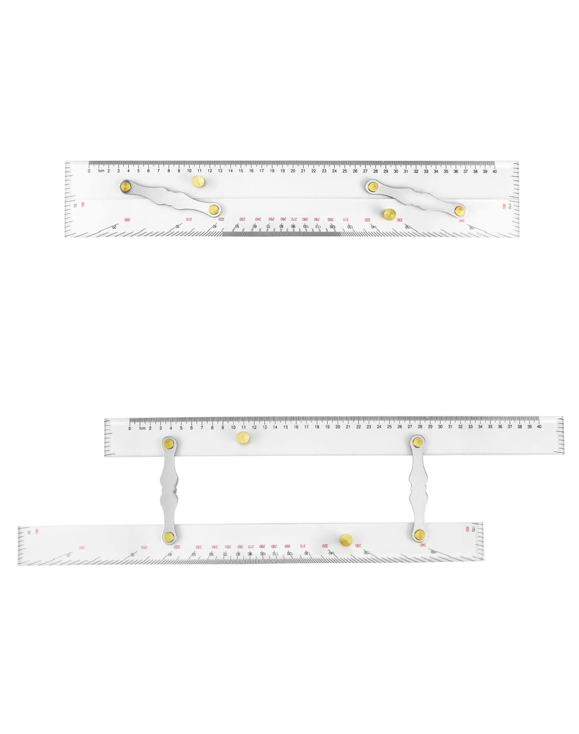 Easy to Draw: Two hands each holding a ruler, alternately moved in parallel. Sturdy links provide the right amount of tension for drawing a line parallel to another line or reference point.