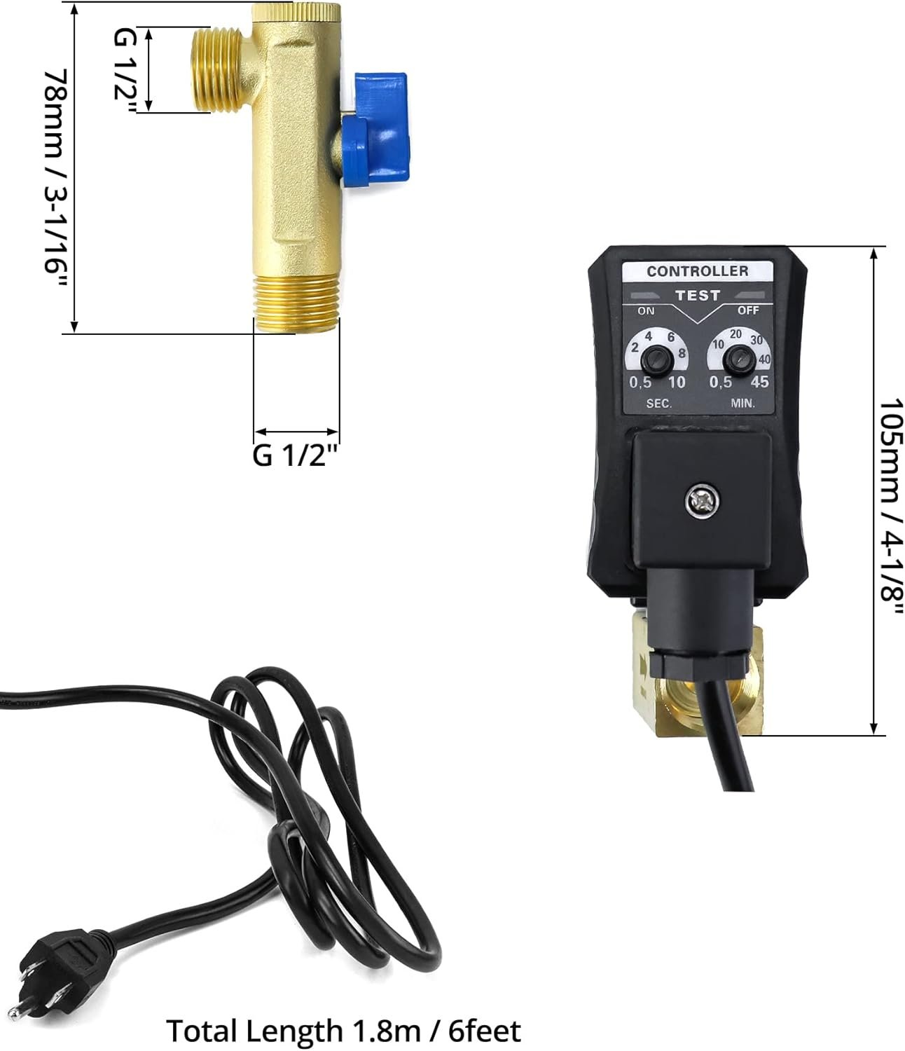 Type: 2-way direct-acting valve. Air compressor tank drain valve. Time interval ( OFF ): 0.5–45 minutes (adjustable). Discharge time ( ON ): 0.5–10 seconds (adjustable).