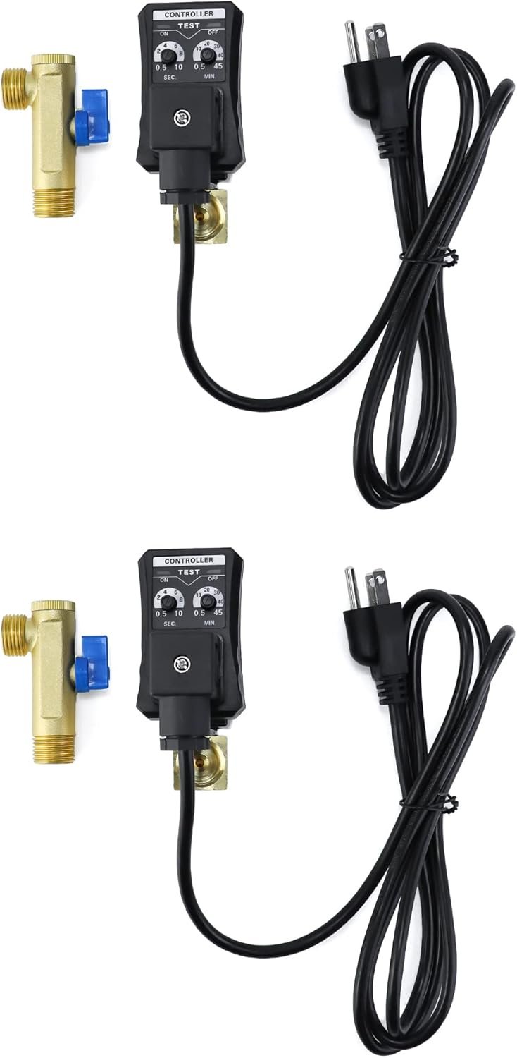 QWORKAutomatic Timed Condensate Drain Valve, 2 Pack 1/2″ Ac110v 2-way Direct-acting Drain Valve US Plug