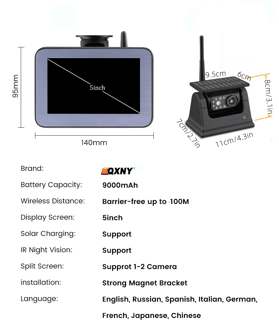 18 reviews for QXNY Wireless Solar Powered Energy Magnet Reverse Backup Camera with AHD 5″ Rear View Monitor for Camper Truck Trailer Rv