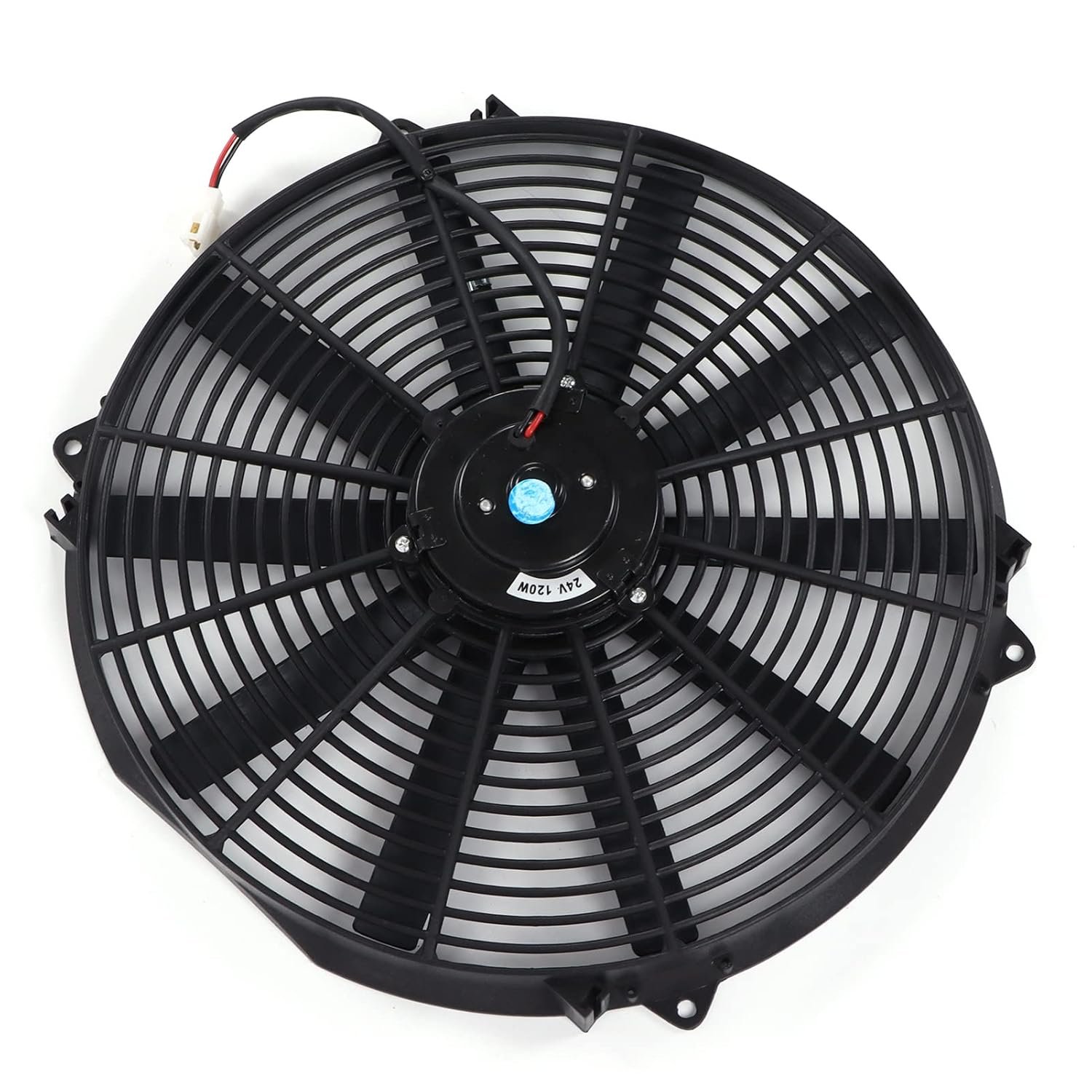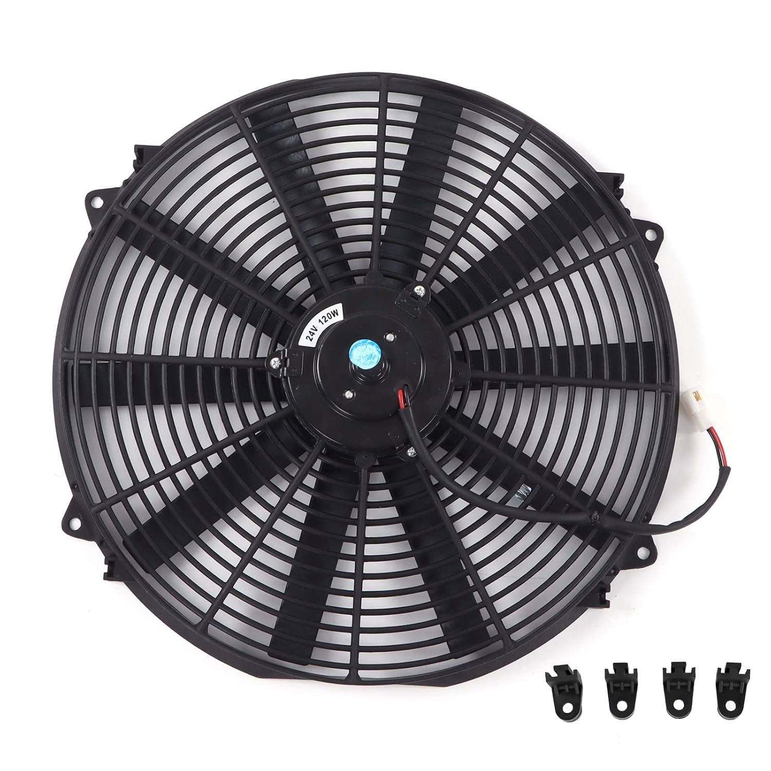 Radiator Fan, 24V 16in Slim Electric Cooling Fan Electric Radiator Fan Low Noise Operation for Trucks, RVs, Trailers, with Retaining Clamps
