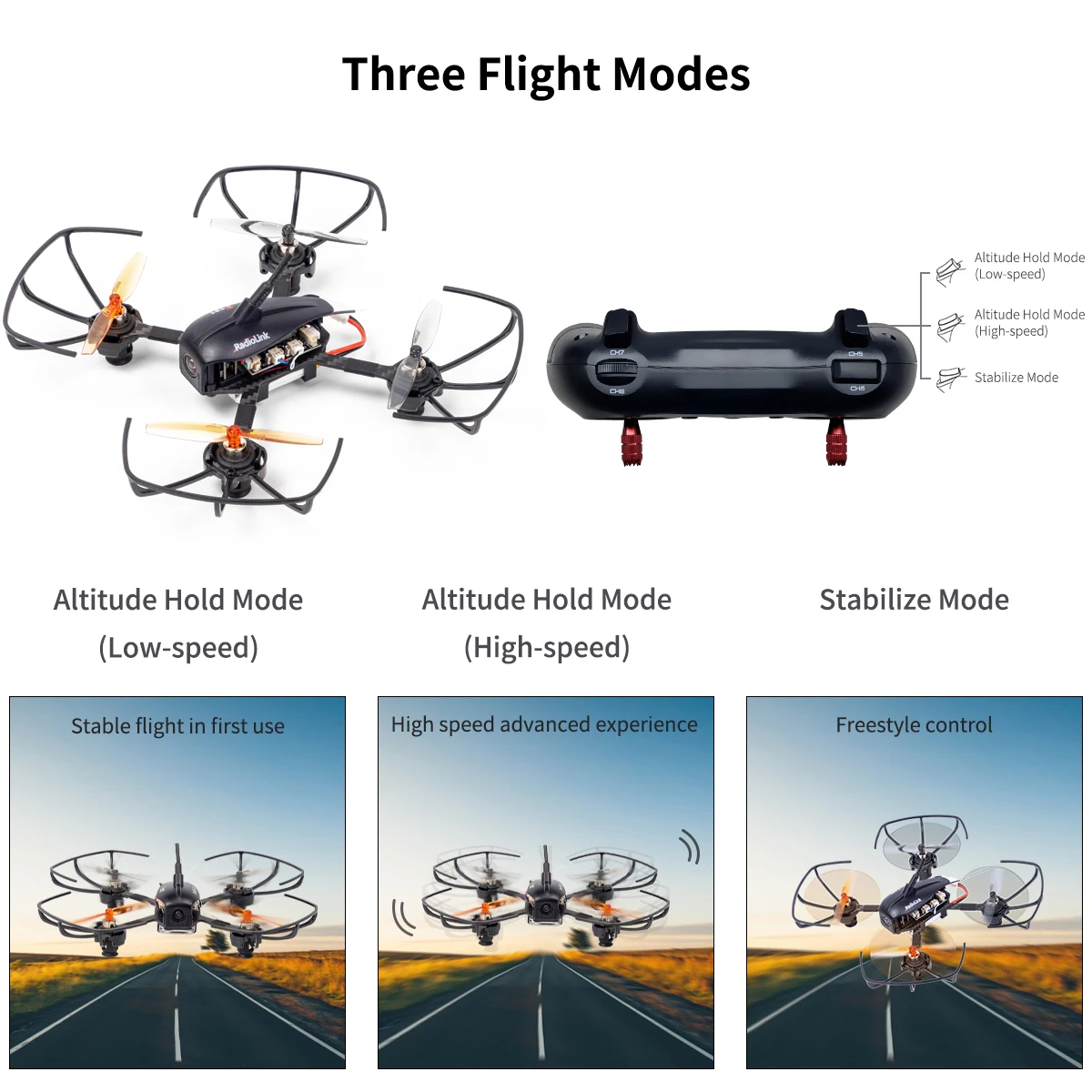Altitude hold mode (low/high speed) and stabilize mode, which will allow novice to learn and master flying.