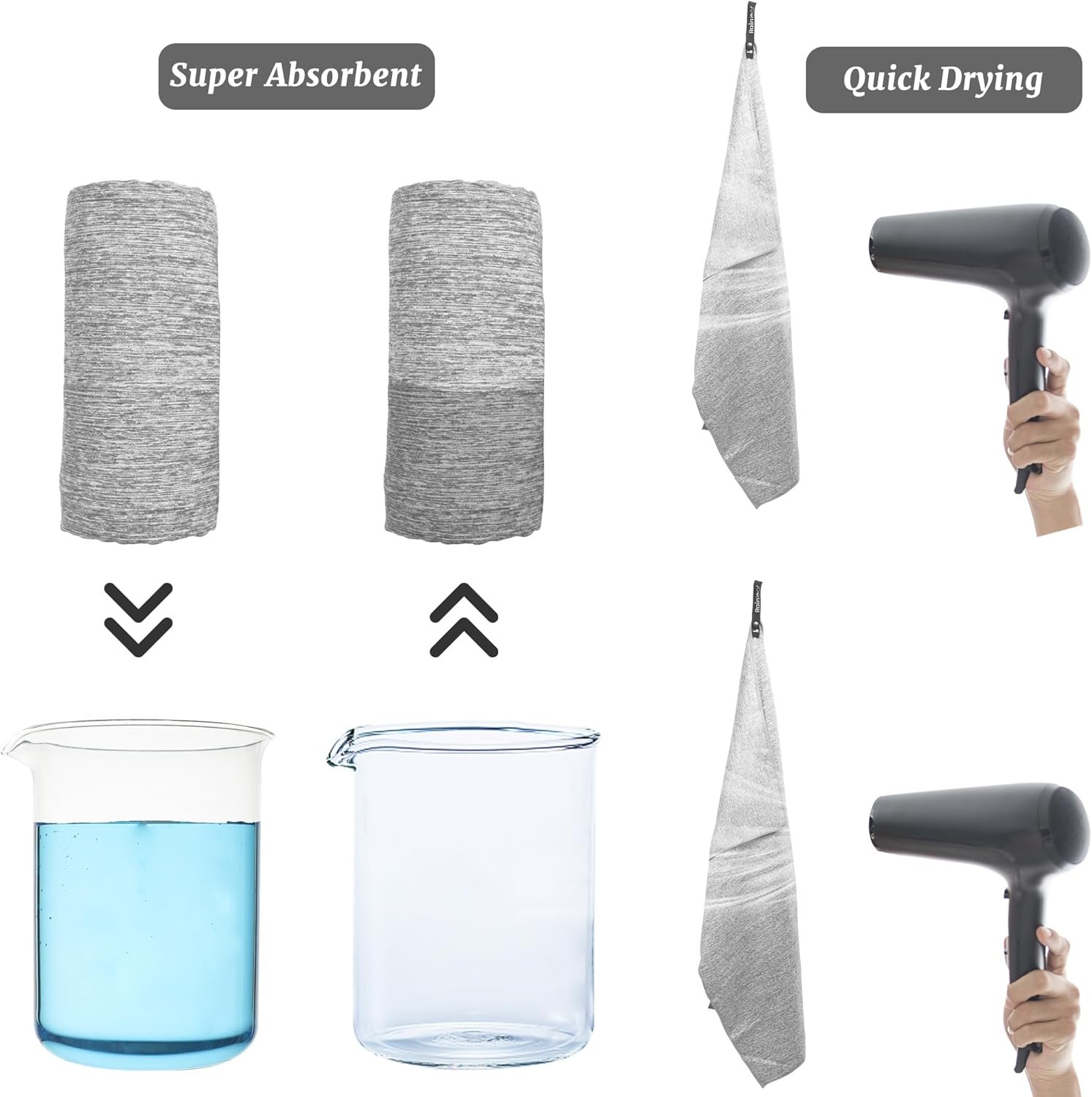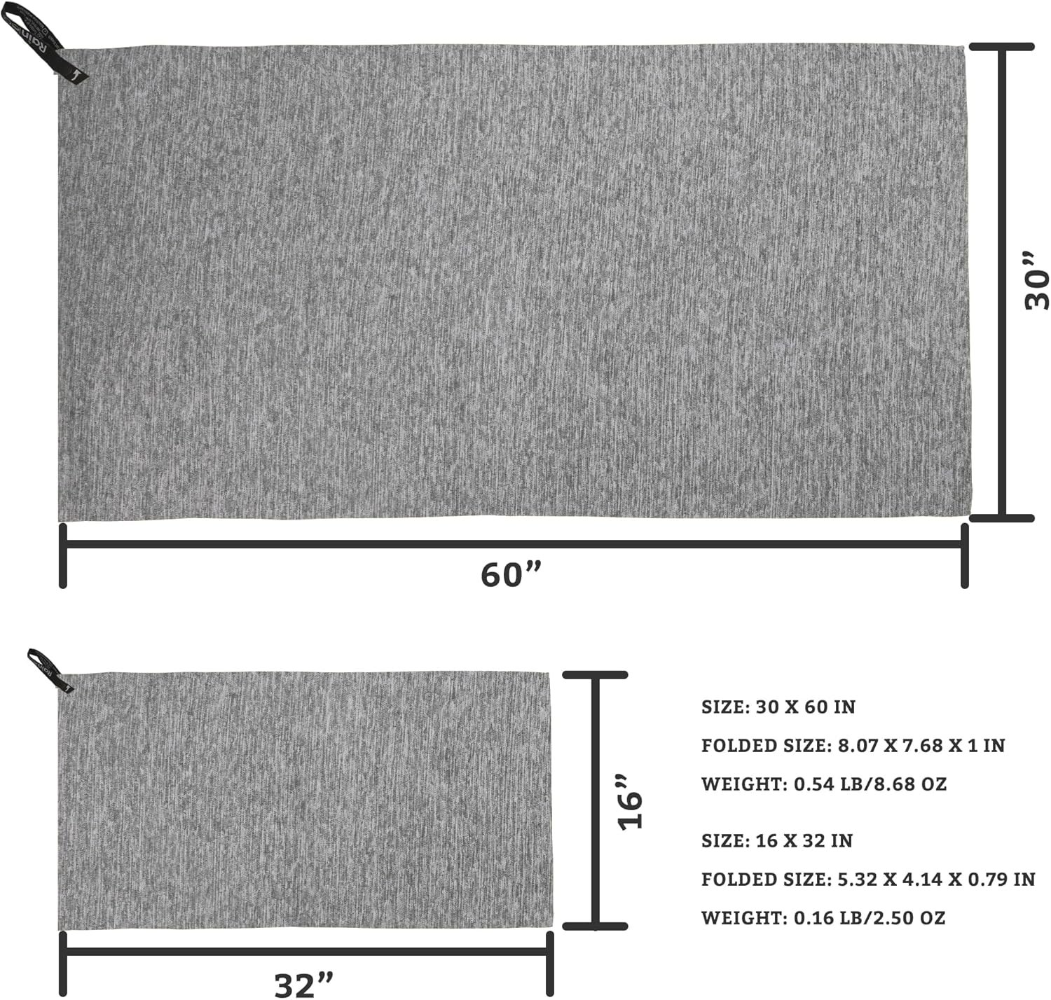Rainleaf 2 Pack Microfiber Quick Dry Travel Towel, Super Absorbent Ultra Compact Lightweight Camping Towel for Gym, Hiking, Pool, Yoga – Mottled Gray