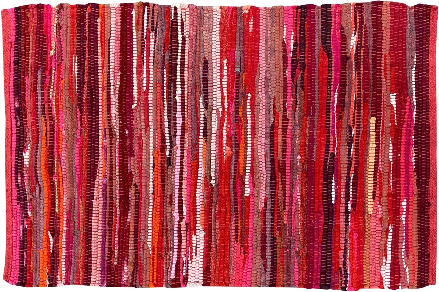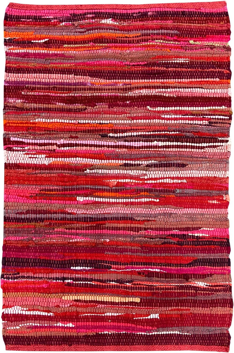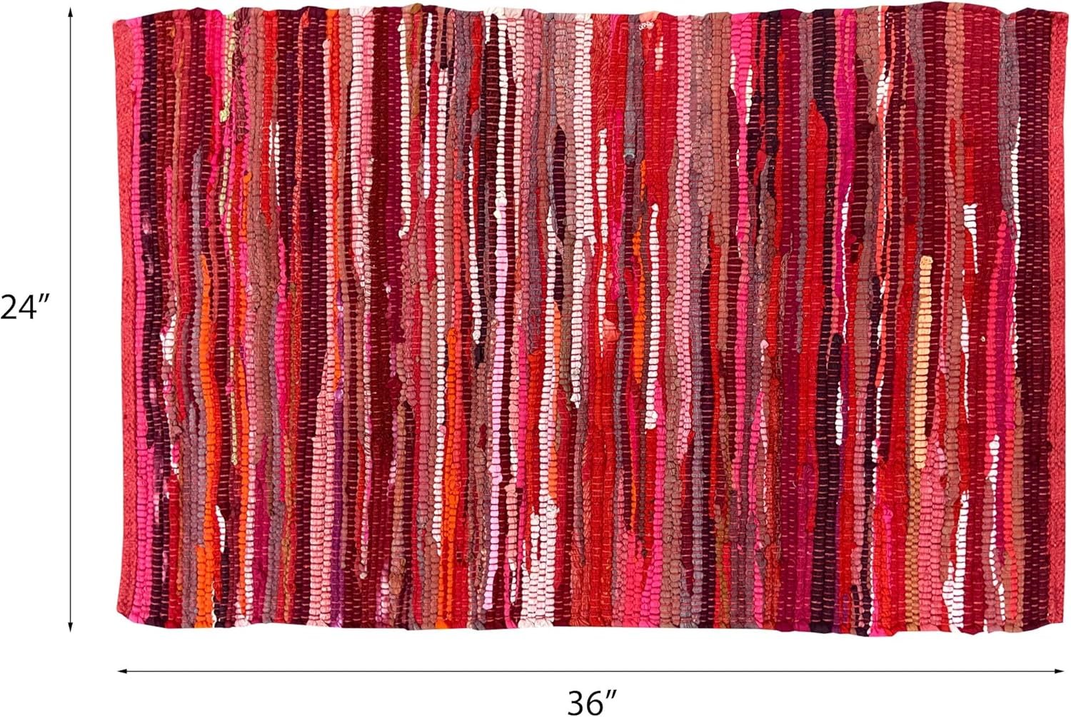 Ramanta Home 100% Cotton Hand Woven Chindi Rag Rug 2’x3′ – Red, Recycled Reversible Rug, Boho Rustic Farmhouse Rugs for Living Room, Kitchen, Dinning Room Entryway Floor Mat – 24″x36″