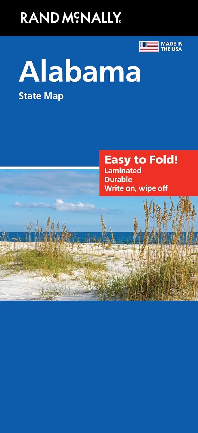 The durable and convenient Alabama Easy To Fold state map will take all the wear and tear your journey can dish out. The heavy-duty laminated design allows you to mark your route, make notes, then wipe the surface clean for further use. This is a must-have for navigation whether you’re a state resident or just passing through. – Easy to fold means no fumbling. – Heavy-duty lamination allows you to write on, wipe off. – Durable and tear resistant. – Folds to display individual map sections. – Full-color maps with enhanced cartography. – Clearly indicated highways, county boundaries, points of interest, and more. – Quick-reference legend and city index. Product Details: Dimensions: 9″ x 4.25″ folded; 18″ x 17″ unfolded.