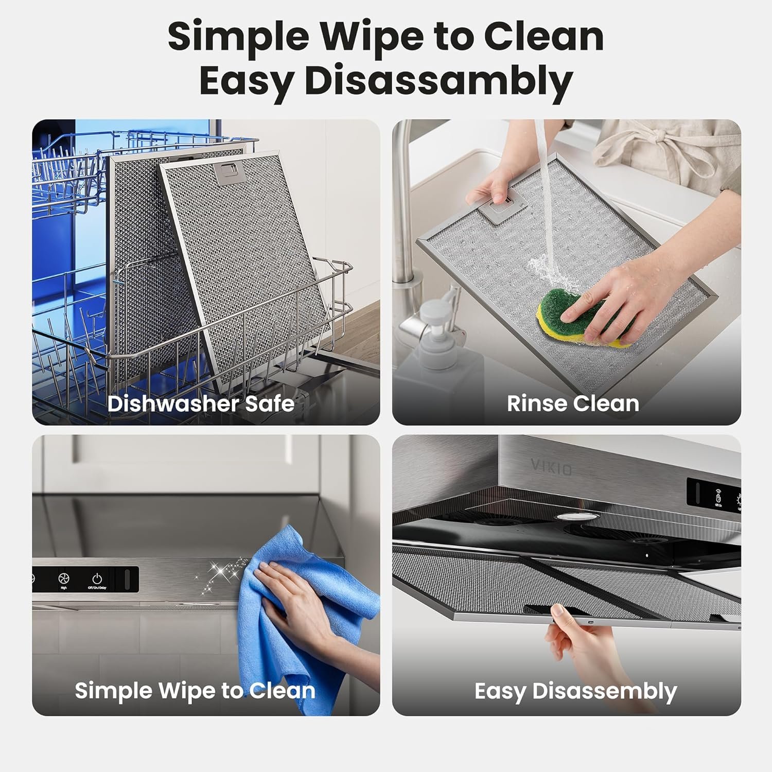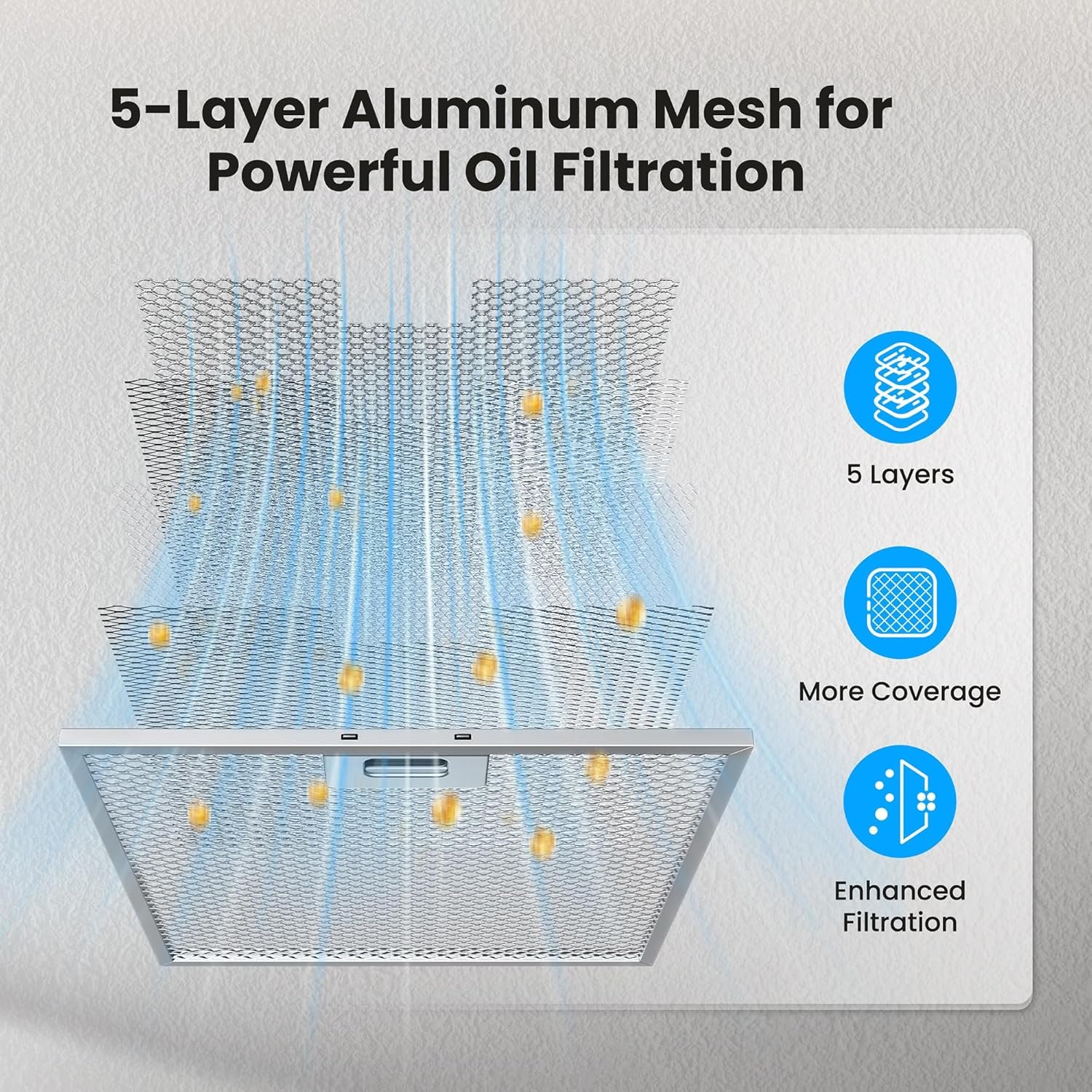 【5-Layer Filter, Dishwasher-Safe】The multi-layer aluminum mesh filters efficiently capture grease and are dishwasher-safe for easy cleaning. Built with reinforced metal locks, they help protect the motor from residue buildup, ensuring long-lasting performance and minimal maintenance. it is smudge-proof and fingerprint-resistant for easy cleaning, extending its service life to 10+ years.