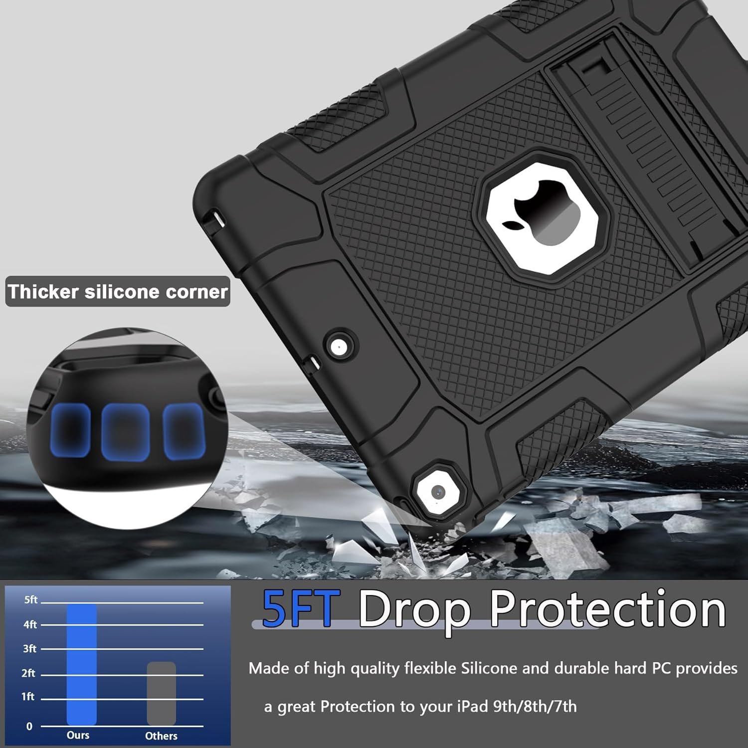 Rantice Case for 9th/8th/7th Generation, Hybrid Shockproof Rugged Drop Protective Case with Kickstand for iPad 10.2 Inch (2021/2020/2019 Release), Black