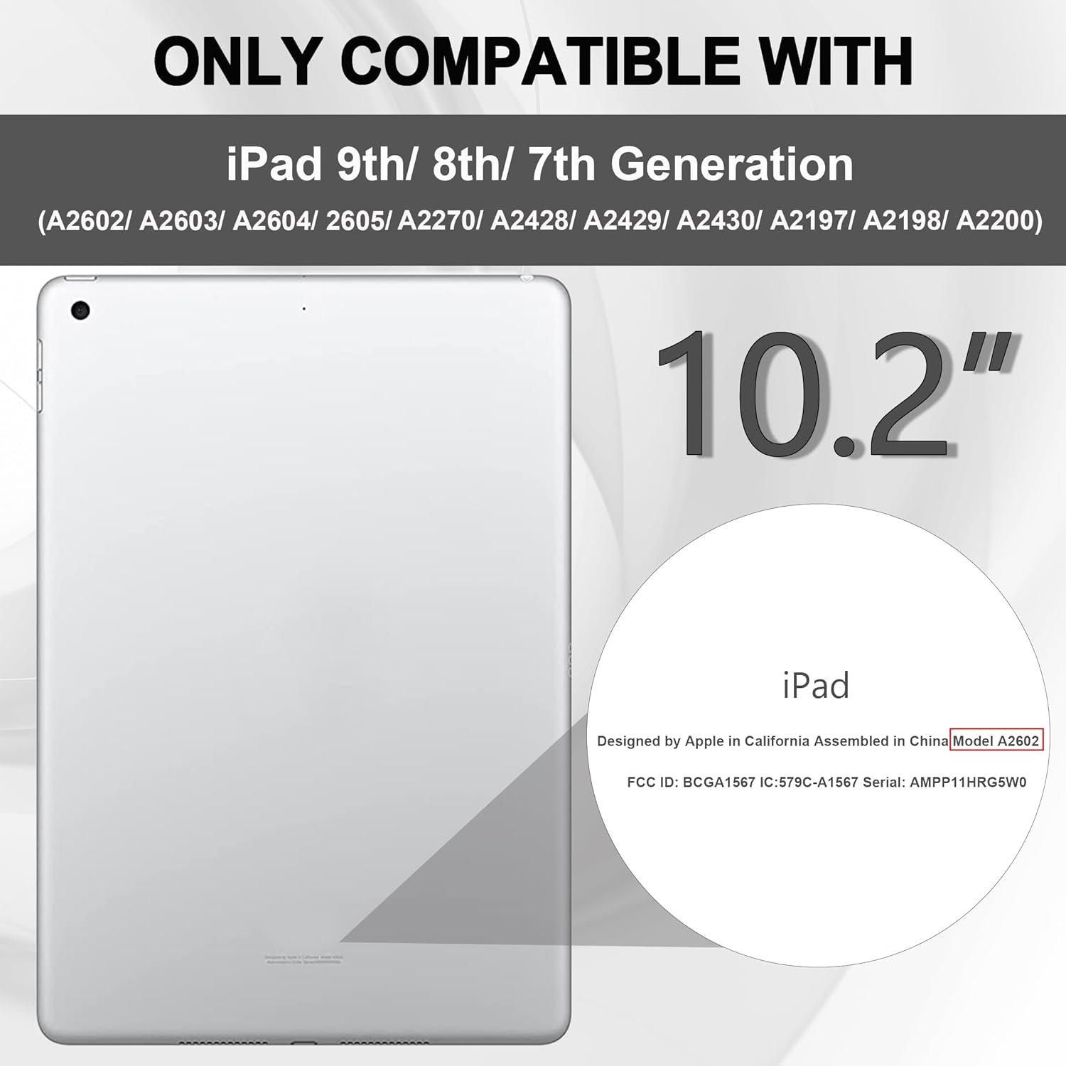 【Perfect Compatibility】This case is exclusively designed for iPad 10.2 inch 9th/8th/7th Generation (2021/2020/2019 Release) models. Model number: A2602 / A2603/ A2604/ A2605 /A2270 /A2428 /A2429 /A2430 /A2197 /A2198 /A2200. Check the model number on your iPad case.
