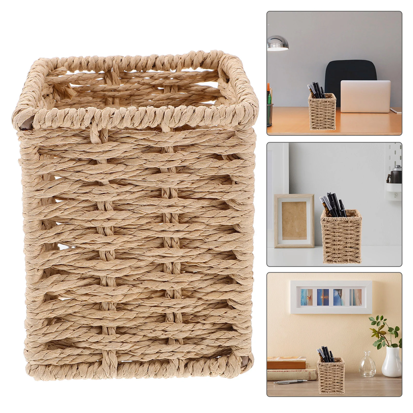Rattan Pencil Holder Handmade Wicker Pen Cup Makeup Brushes Holder Woven Vine Desk Organizer Pen Container Box Kitchen