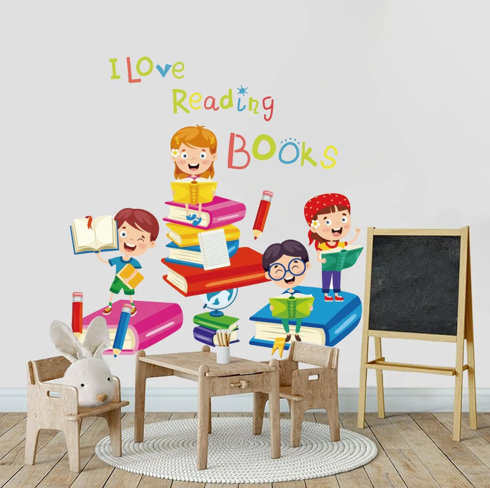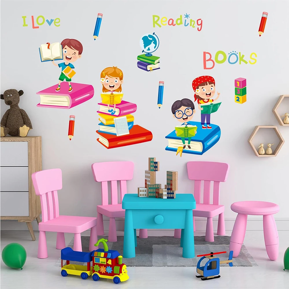 Reading Books Wall Decals,Inspirational Quote Wall Sticker Educational Reading Nook Library Classroom Motiavtional Wall Decal