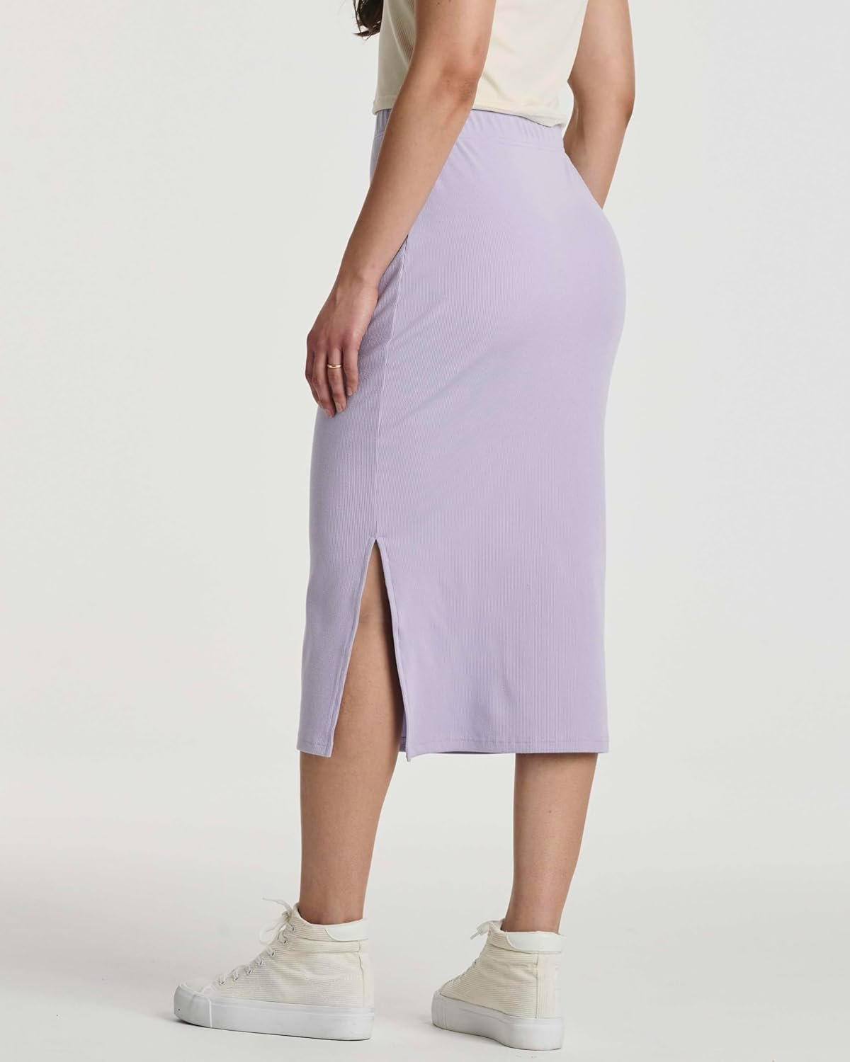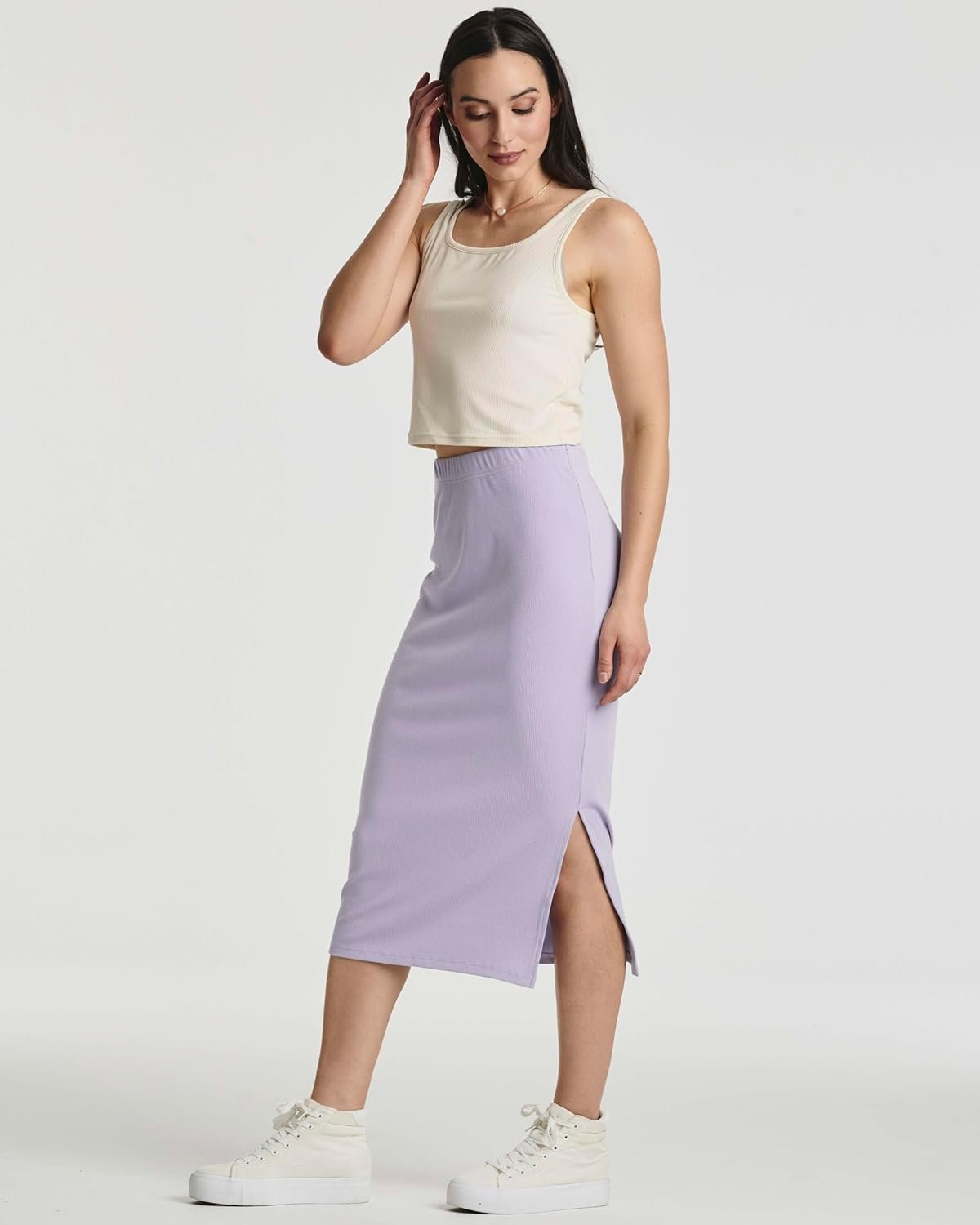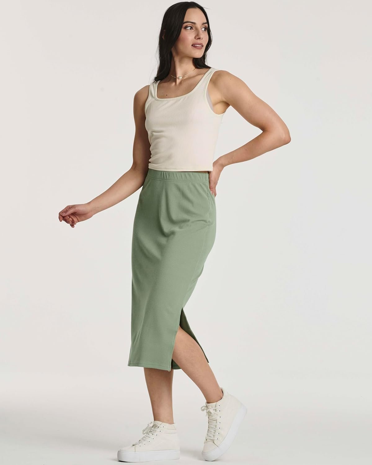 Real Essentials 3 Pack: Women’s Midi Ribbed Knit Skirt with Side Slit – Stretchy Work Business Casual Pencil Pull-On Skirts