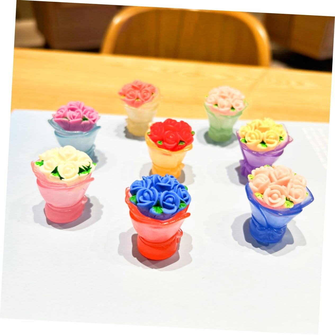 Realistic Mini Potted Roses 8pcs Artificial Succulents for Dollhouse Home Decor DIY Project Fairy Garden