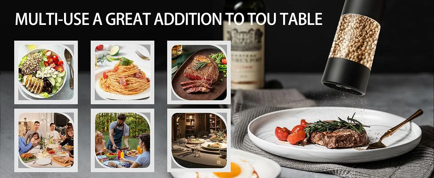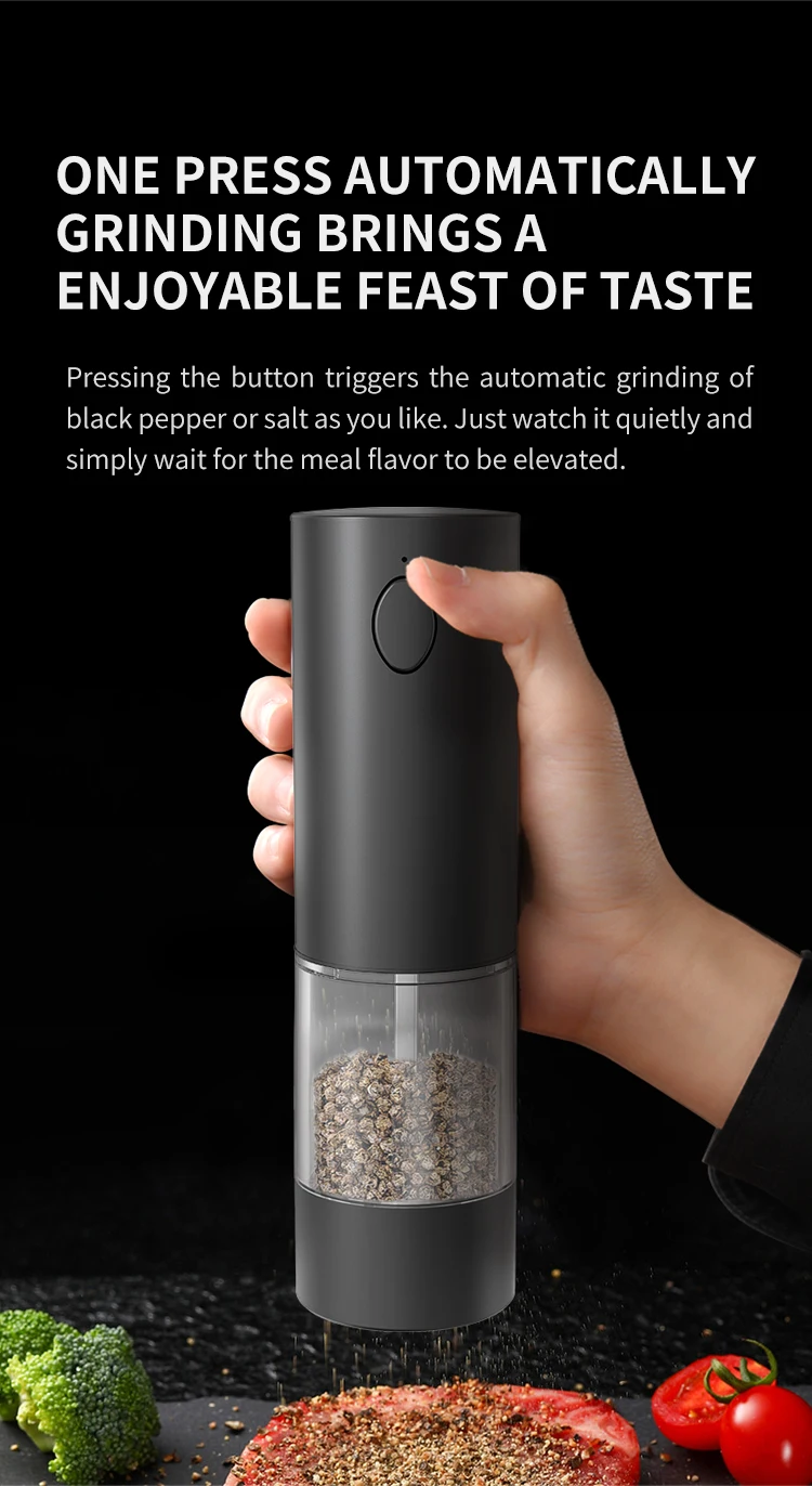 ðŸ‘ã€One Handed Operation】Automatic salt and pepper grinder set doesn’t need to twist like manual grinders. Press and hold the button, you will get fresh salt pepper or other spice powders. Free your hands, you can handle other kitchen tasks while grinding.