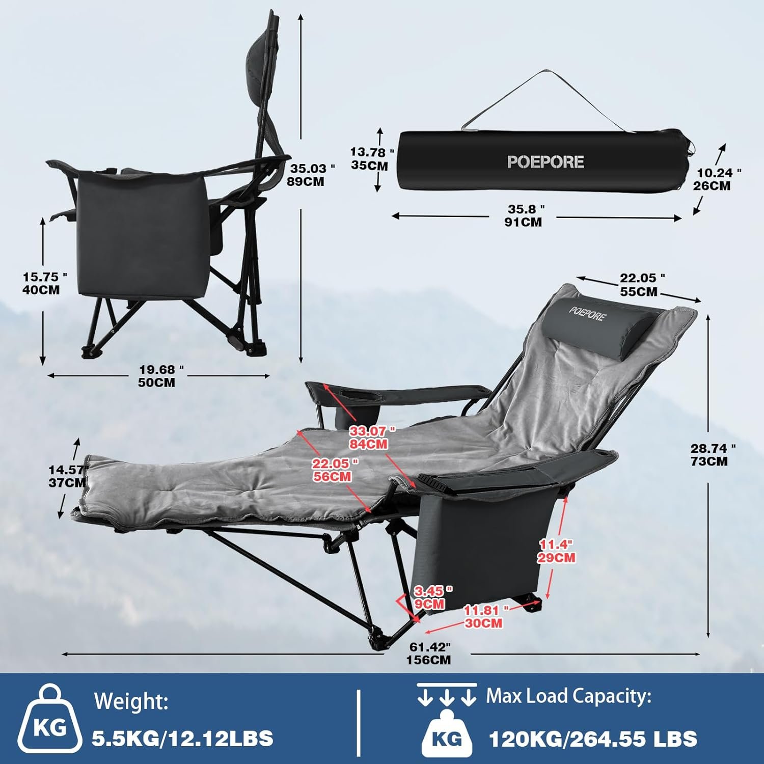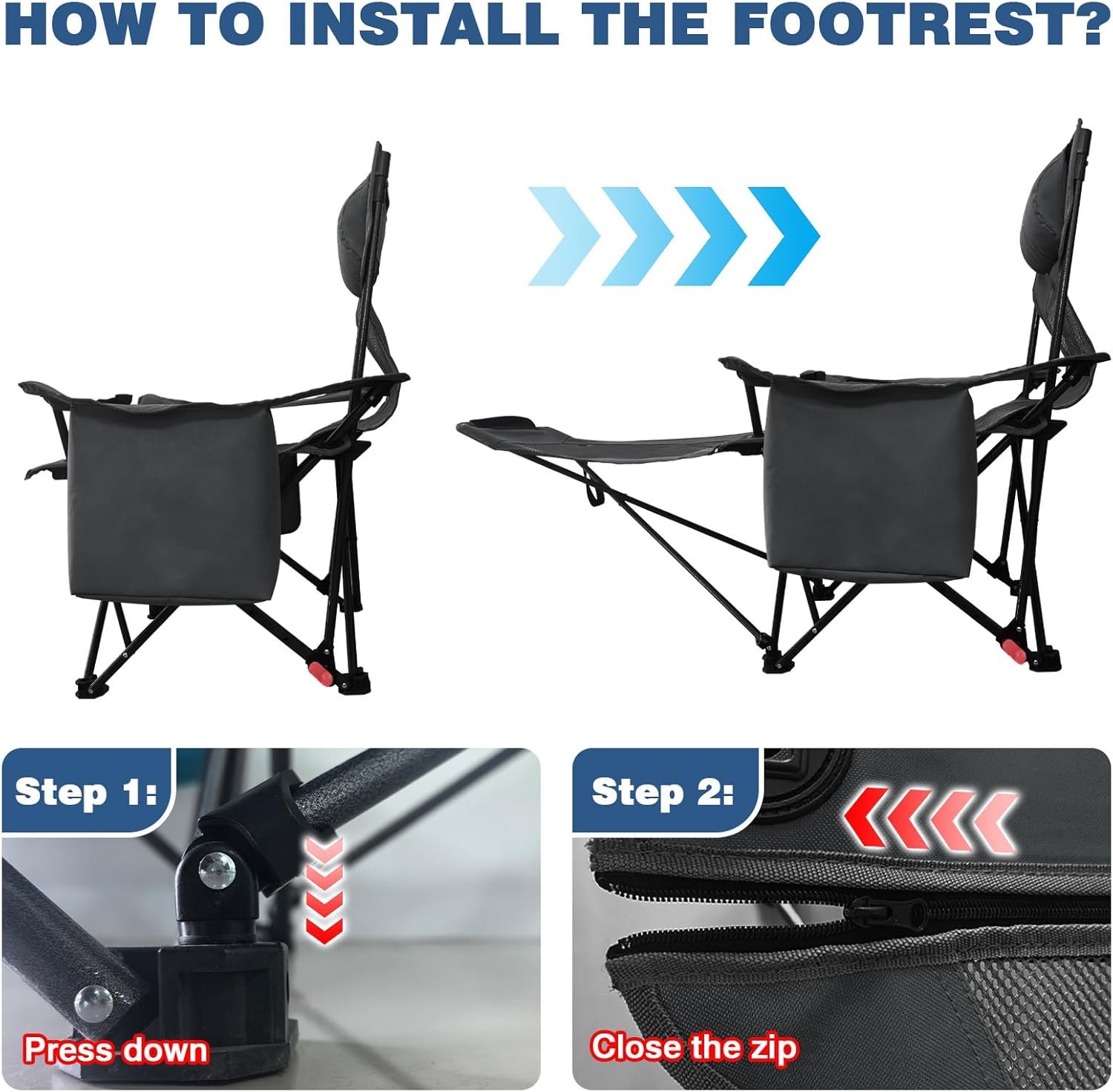 Portable & Lightweight: This folding camping chair can be set up or collapsed in a flash, with no need to detach the footrest. With a folded size of just 10.23 x 7.87 x 35.43 inches and weighing only 12.12 pounds, it’s a cinch to carry. The chair comes with a storage bag, simplifying your travel preparations and ensuring you’re ready for a delightful excursion.