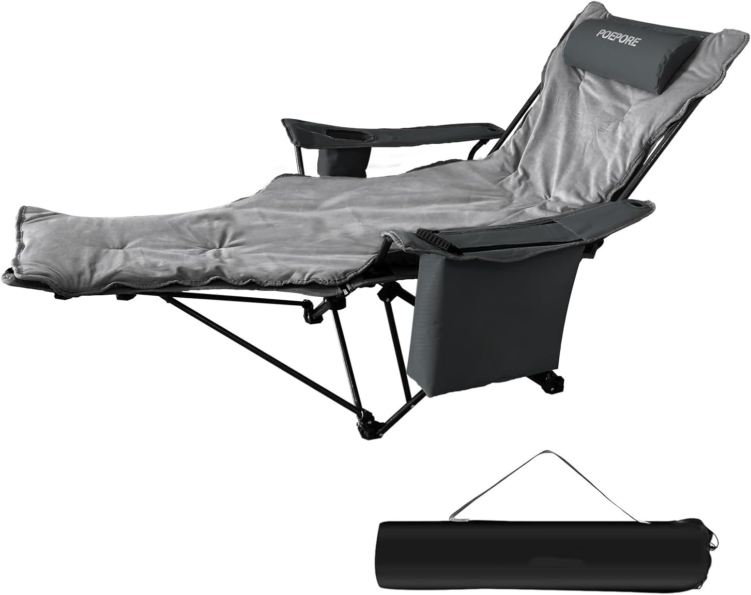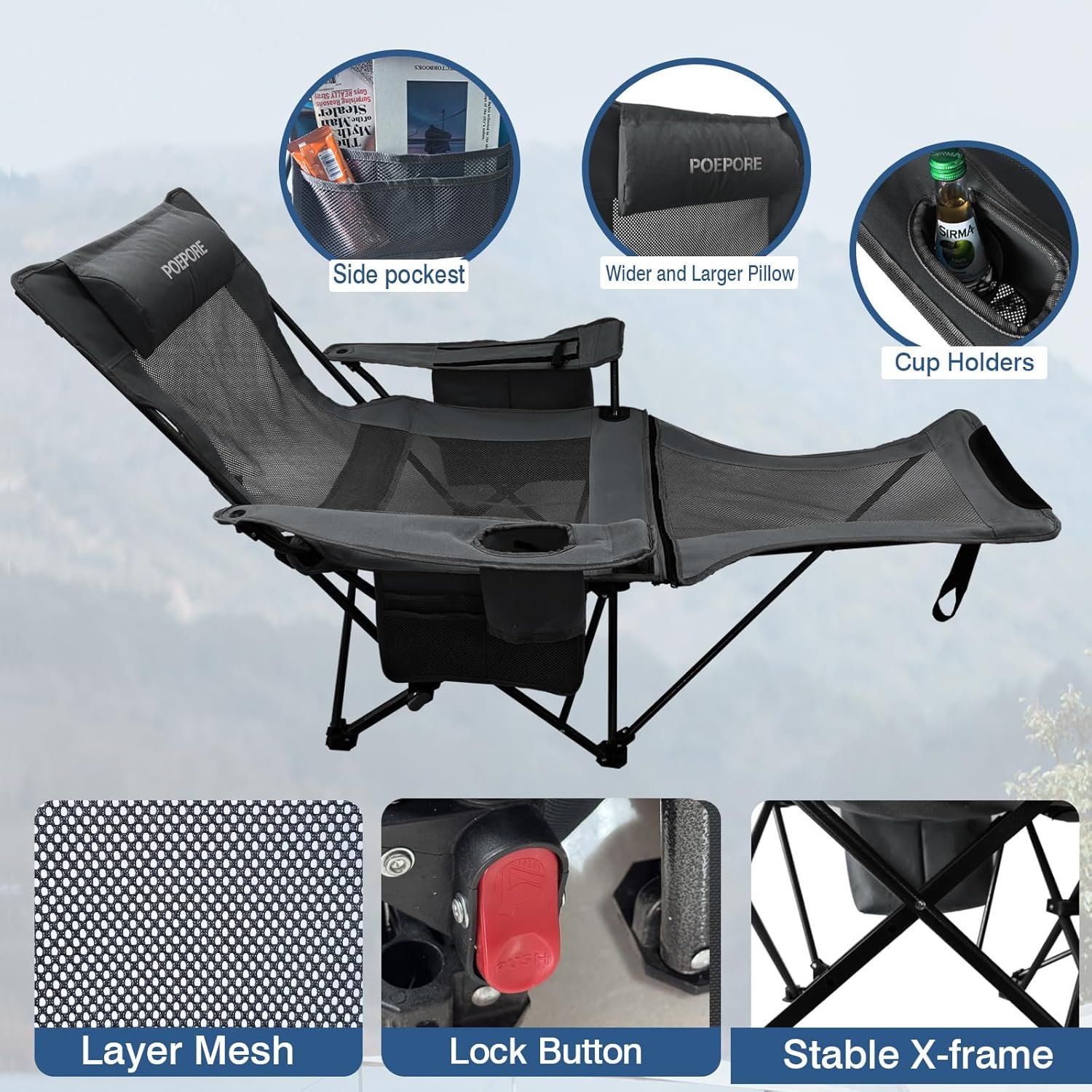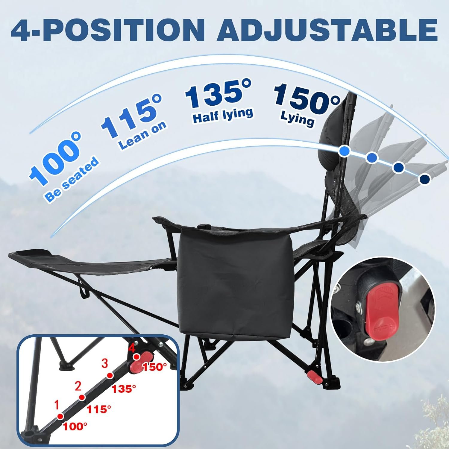 4-Position Reclining Adjustment: Tailor your seating position with the recliner camping chair’s 4 adjustable angles, ranging from 100° to 150°. Select the perfect recline setting to match your comfort preference, enhancing your relaxation experience during any leisure activity.