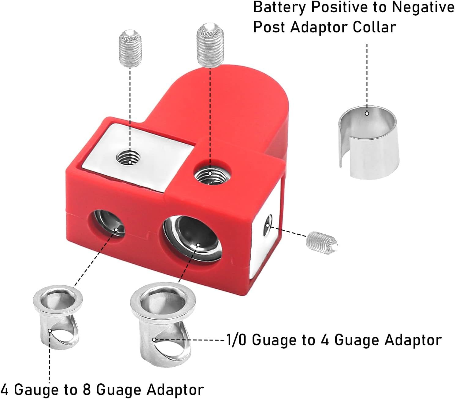 2 Pack of positive or negative battery terminal clamps, which connects to the positive or negative battery posts with adaptor collars.