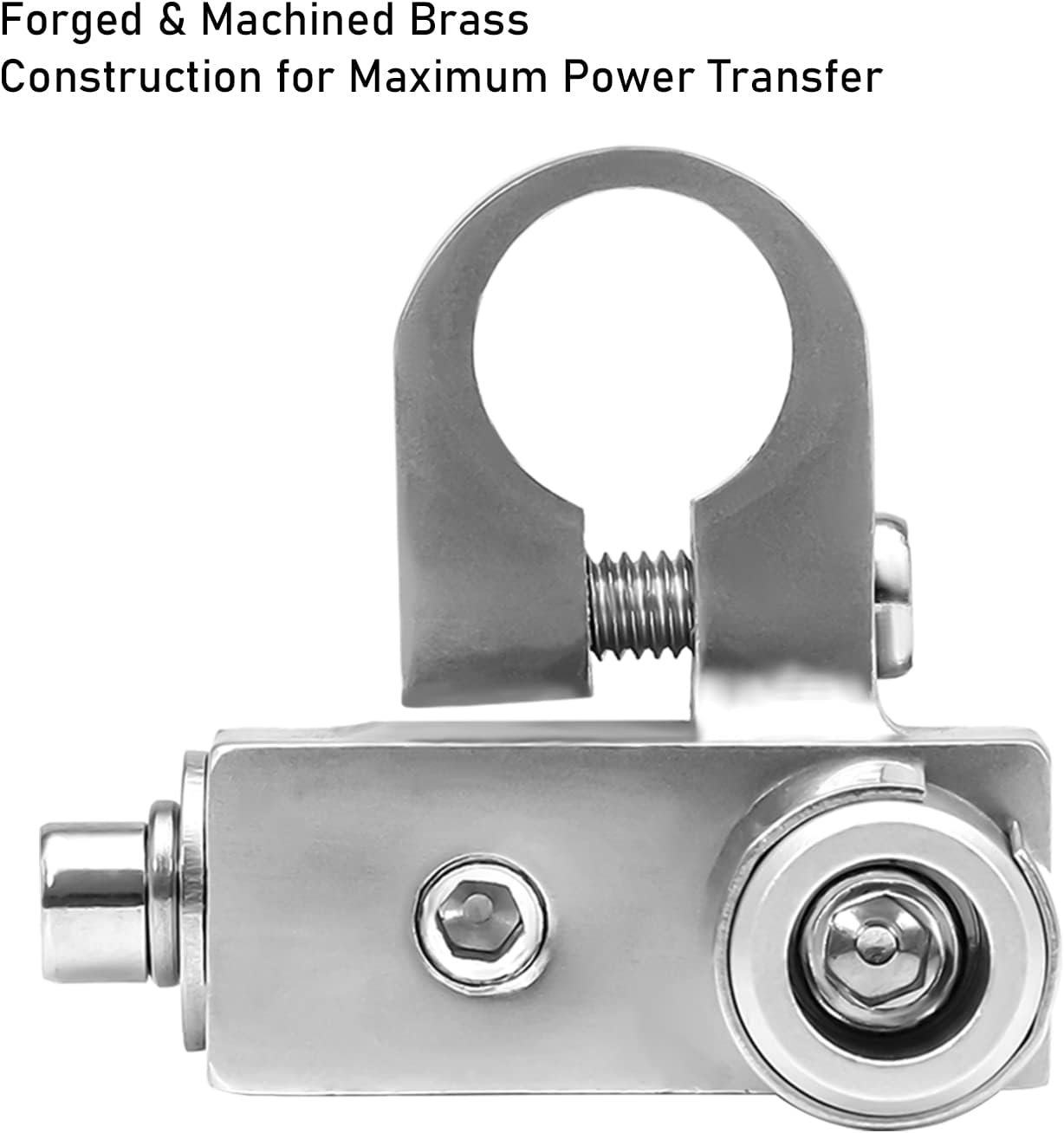 Made from forged and machined brass for the best power transfer possible, unlike other cheap zinc battery terminals. Oversized convex screws for rock-solid connections. Marine-grade satin chrome finish for superior corrosion resistance.
