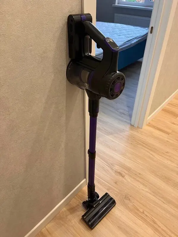 The vacuum cleaner works very effectively. I was worried that it might be too heavy, but actually it isn’t, and you get used to its weight quickly. The most important thing is that it is very flexible and foldable, so that one can clean hard-to-reach areas like the floor well. In its weakest mode, it collects all the crumbs in the house, including cat hair. We have carpets, and in this mode the battery charge is enough to completely clean a three-bedroom apartment.