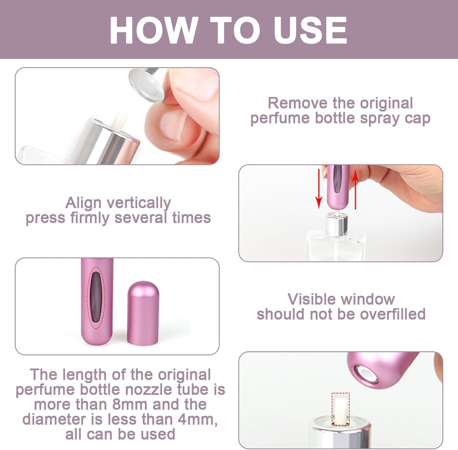 ✔ The innovative pump-type filling method greatly simplifies the refilling steps of mini perfume refillable bottle, and even first-time users can quickly get started.