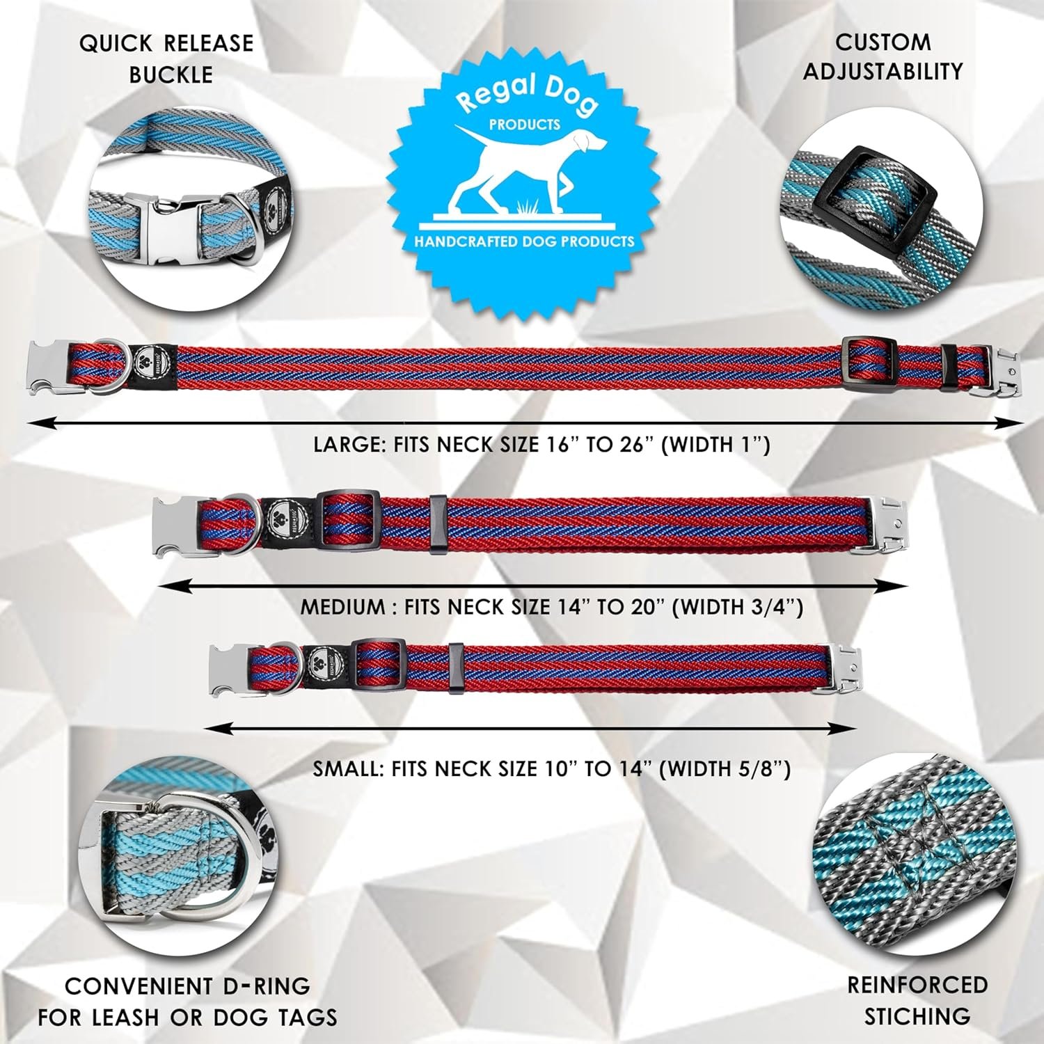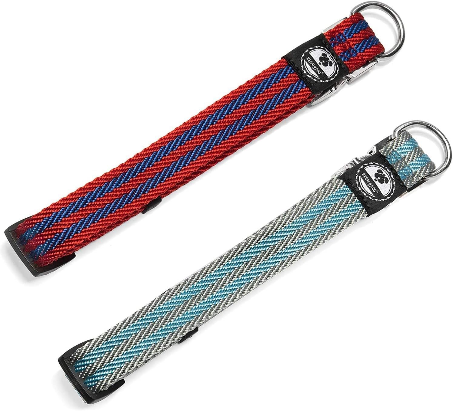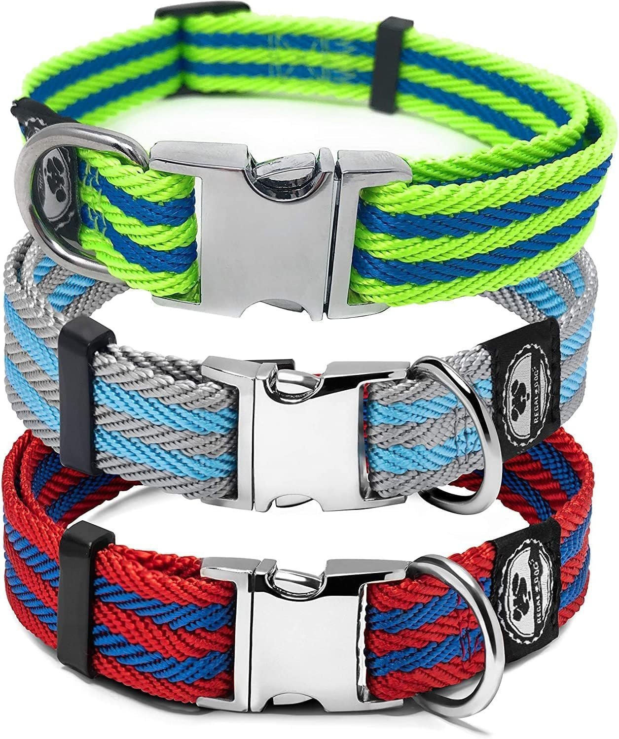 Regal Dog Products Large Pet Collar with Custom Engraved Buckle | Durable Twill Dog Collars for Small Dogs | Dog Collars for Medium Dogs | Dog Collar for Large Dogs (Gray/Blue Stripe)