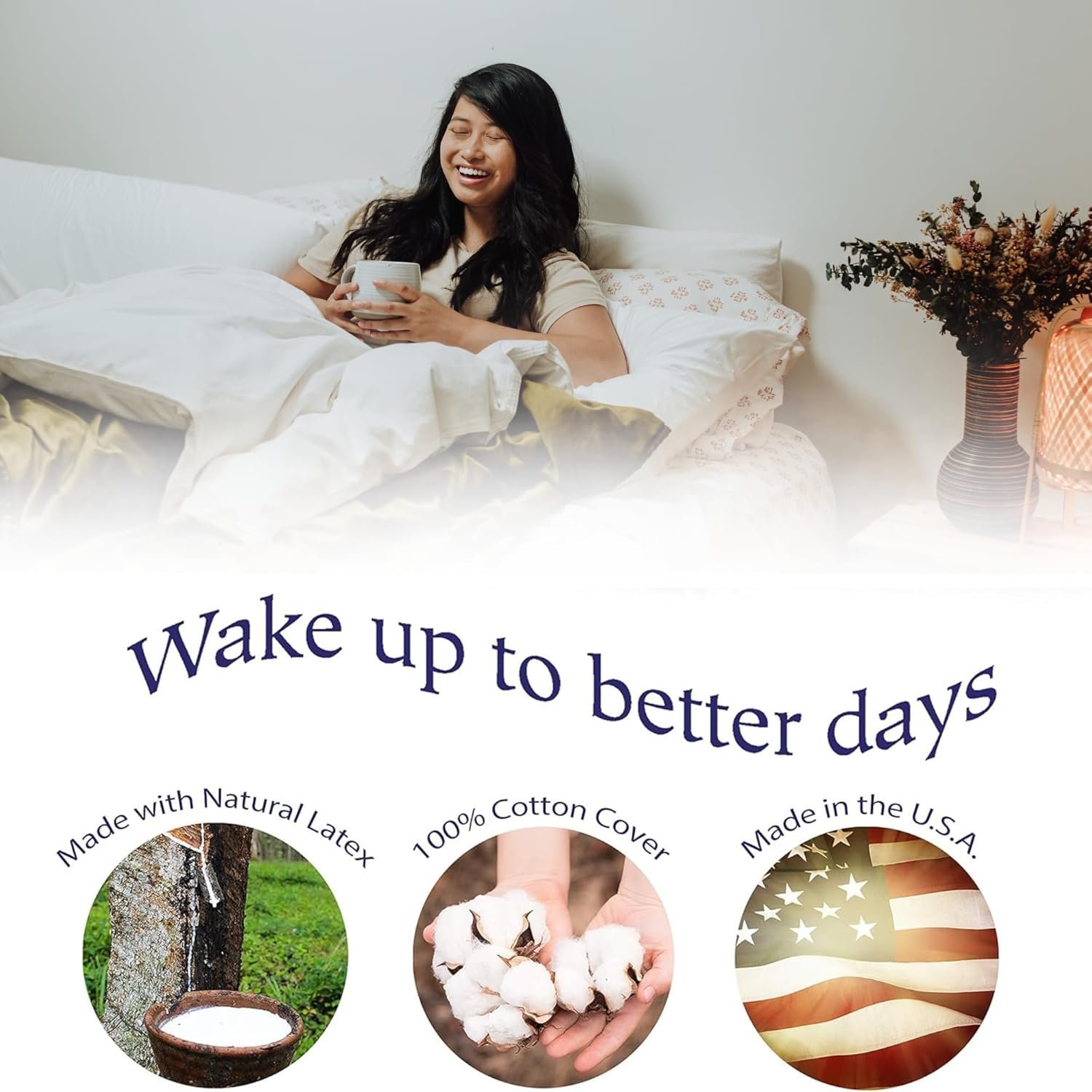 RejuveNite® American Talalay Latex Pillow – Medium Support, Queen High Profile – 100% Cotton Sateen Cover – Made in USA