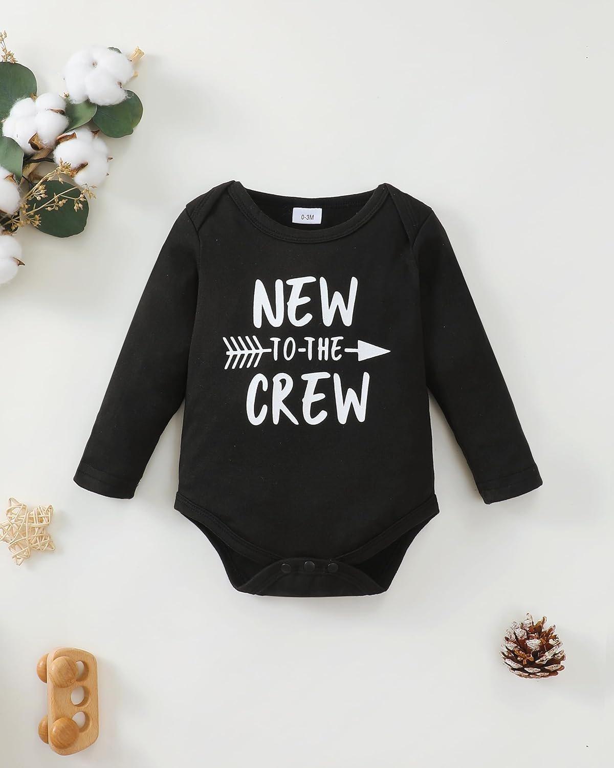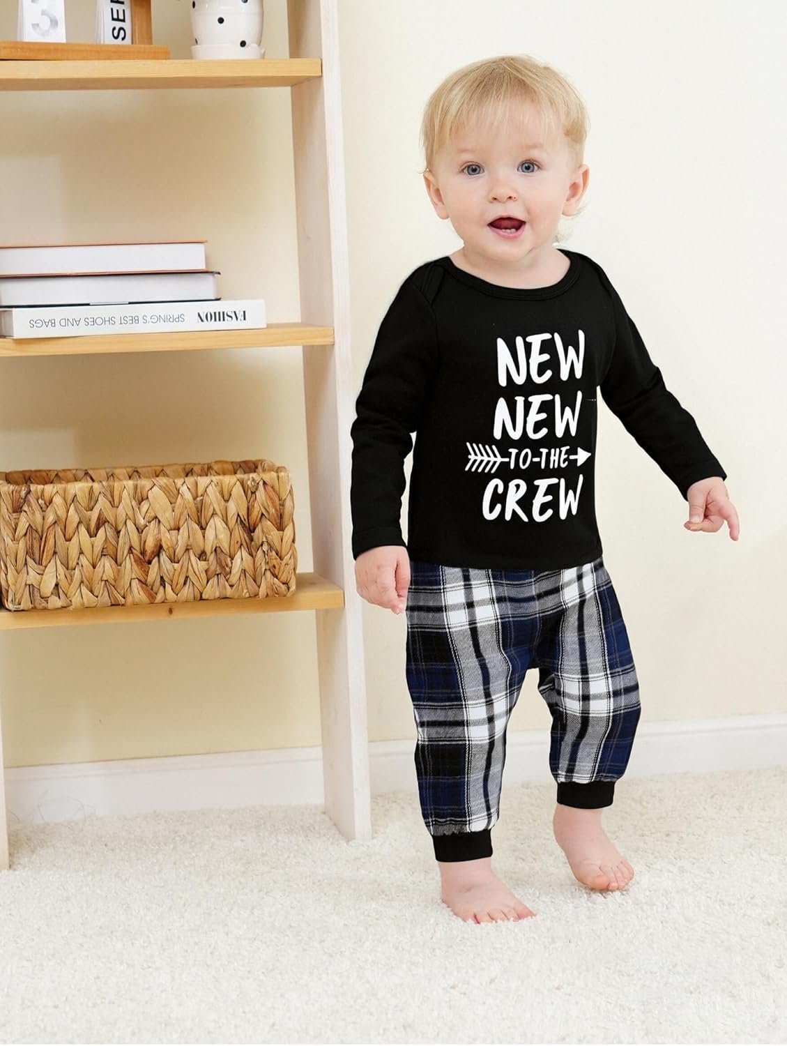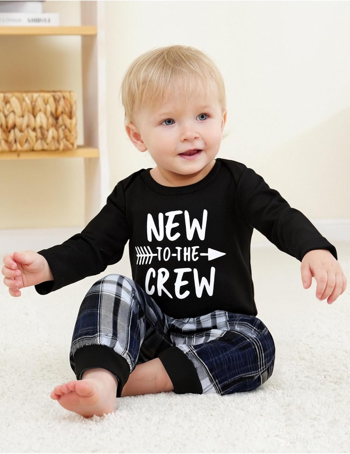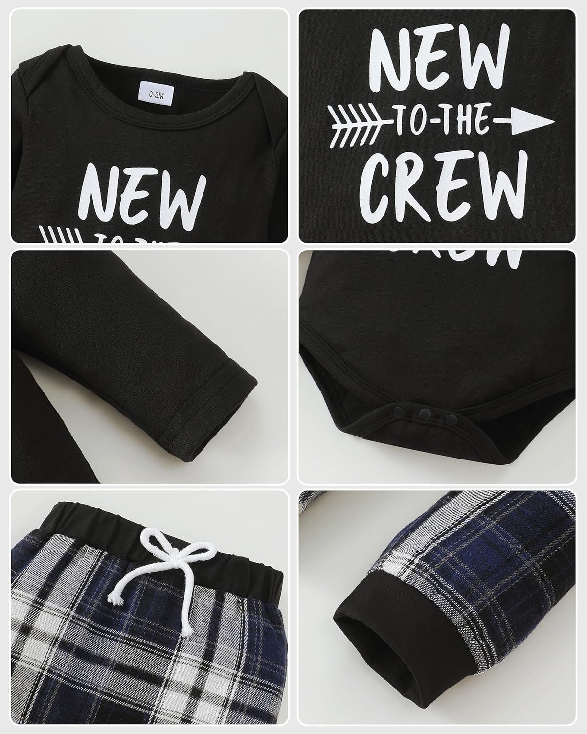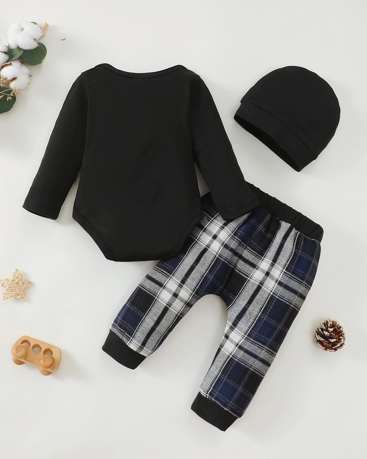 Renotemy Newborn Baby Boy Fall Clothes, Long Sleeve Letter Printed Rompers Plaid Pants Hat Outfits Clothing Set 0-18 Months
