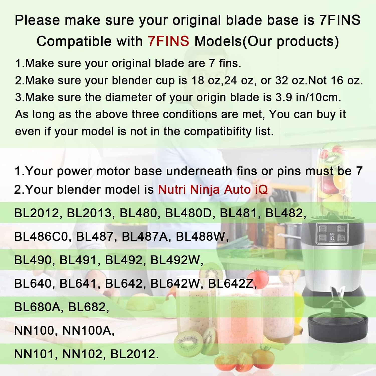 [Compatibility] This Blender Blade Accessories Fit for Nutri Ninja Auto-iQ BN401 BL455-30, BL481-30, BL482-30, BL485, BL486CO, BL487,BL487-30, BL487A, BL487A-30, BL487T, BL487T-30, BL2012, BL2013, BL480, BL480D, BL481, BL482-30,NN100, NN100A, NN101, NN102,BL490, BL491, BL492, BL492W,BL492IS-30, BL494, BL640-30, BL641-30, BL642-30, BL680A-30, BL681A, BL681C, BL682-30, BL682QT-30, BL685-30, BL687CO-30, CT680SS, CT680CO2SS, CT641-30 BN751, BN801 BL480D and more (Please confirm that your blender need a 7 Fins replacement blade before purchasing)