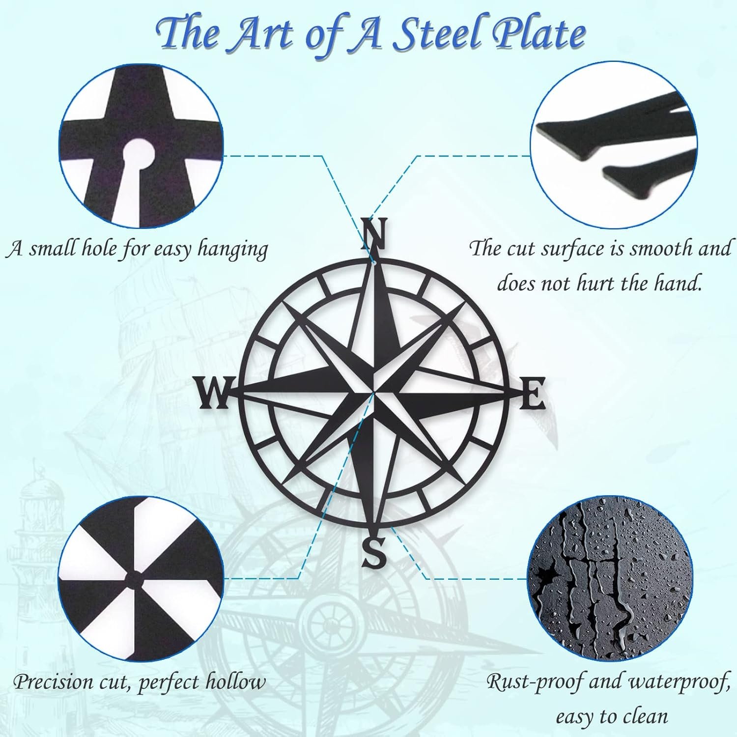 EASY TO INSTALL: The top of the metal compass is designed with a small ring, which can be easily hung on the wall. It may be slightly deformed due to transportation, please adjust by hand to the best condition.