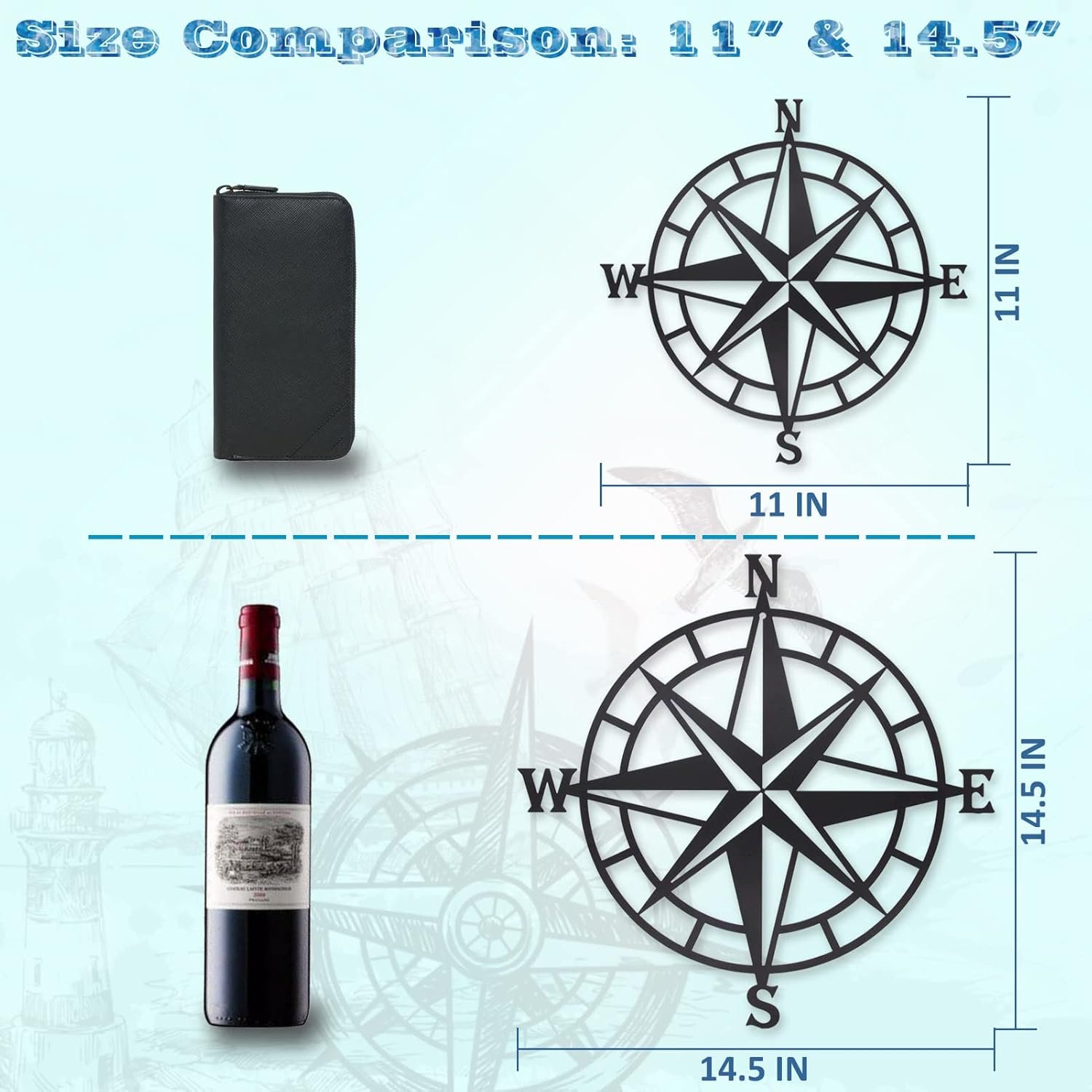 HOME GIFT IDEAS: This unique compass decoration looks perfect in any room with nautical, beach or coastal themed home decor. Perfect for Housewarming gifts or holiday gifts for friends and family. You can choose 11″,14.5″ or 17″ according to your actual situation.