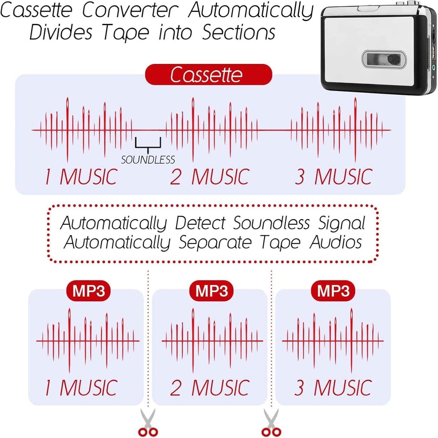 Reshow Portable Cassette Tape Player, Best Overall Standalone USB to MP3 Converter, Audio Cassette to Digital Converter Automatically Divides(Silver)