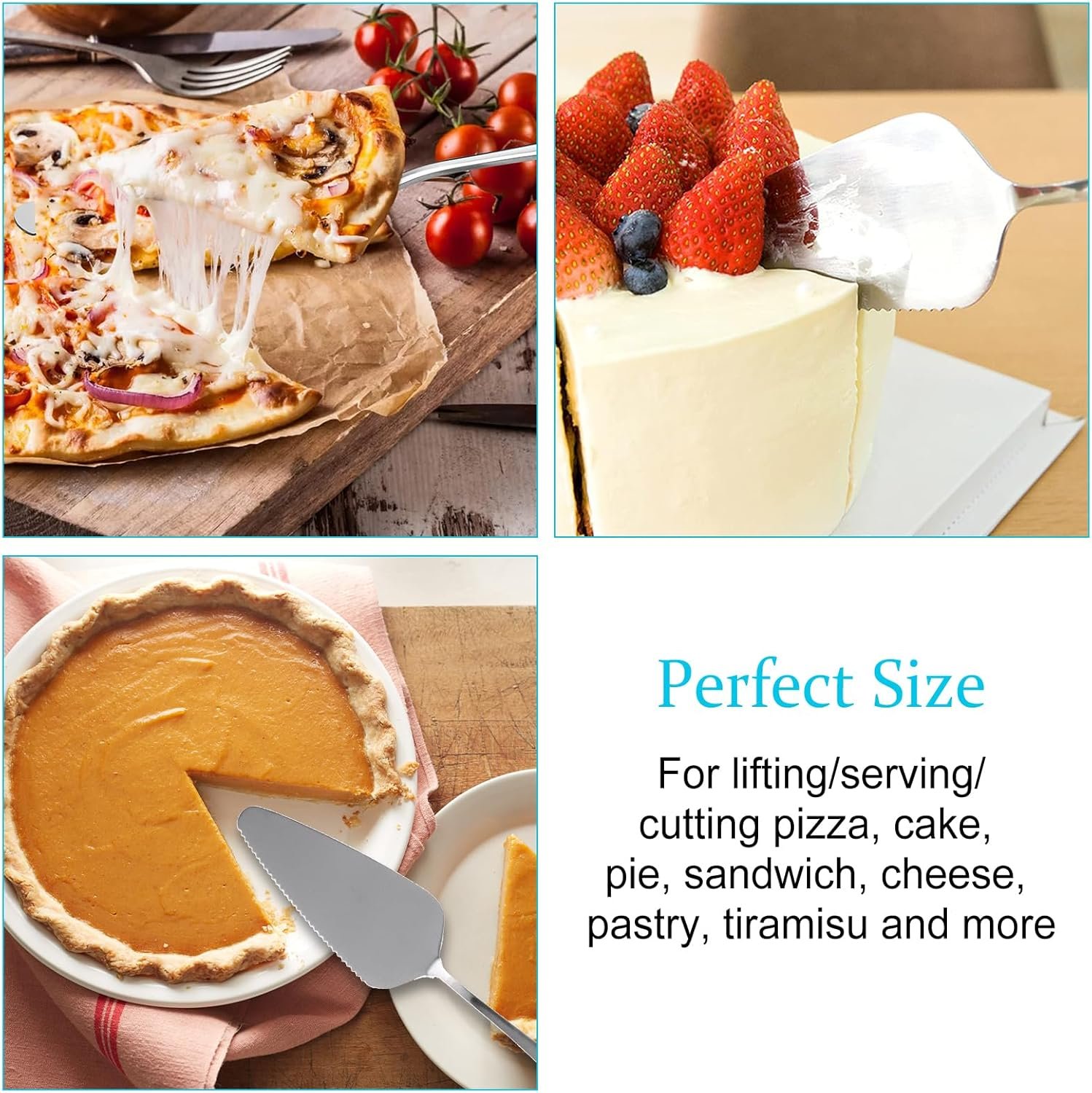🍕MULTIPLE PURPOSE: You can effortlessly use our stainless steel serrated cake pizza spatula server, which is perfect for lifting and serving pies, easily cutting various pizzas, cakes, lasagna and other desserts, while maintaining the beauty of the food, making eating easy and convenient.